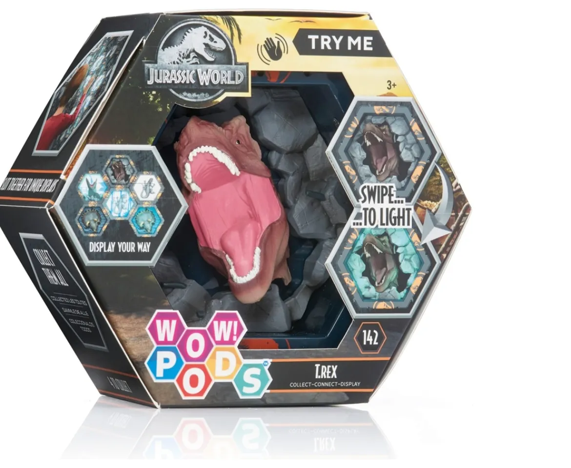 - Contents: Jurassic World Tyrannosaurus figure, housed in a hexagonal POD complete with a mystery reveal backdrop