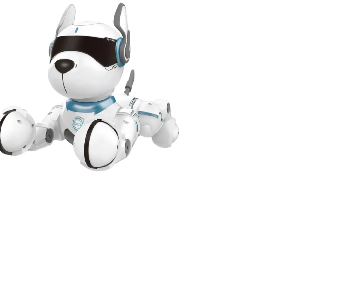 Voice controlled and remote control smart robot dog pet. It comes with 9 voice commands, imitates 10 other animals and you can program your own actions.