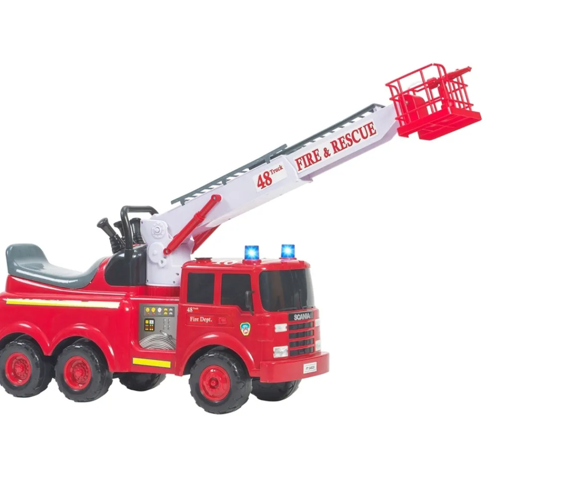 Set off on a fire rescue mission with the Action Fire Engine. This sit-on fire engine toy is sized just right for little firefighters and comes complete with a toy helmet for dressing up fun.Lights, Sounds & WaterThe Action Fire Engine features realistic lights and siren sounds to bring rescue adventures to life. Raise and lower the crane with the control stick and use the water-firing function to complete any mission.Made for KidsEasy for little ones to control and packed with role-play features, the Action Fire Engine and Toy Helmet set is perfect for encouraging motor skills, hand-eye coordination and outdoor play. This ride-on fire engine also offers hours of imaginative play!