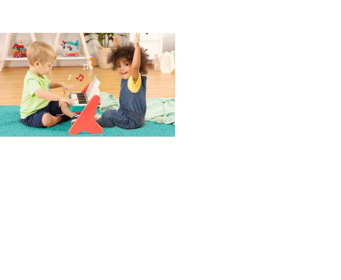 Twinkle, twinkle little piano star – show them all what a maestro you are with the Mini Maestro Wooden Piano from B. Toys! This kid-friendly piano has 25 black and white keys with notes A-to-G, making this instrument easy for your little musician to explore.Once they’re ready to play a song, they can simply place the included songbook on the wooden frame and follow the notes to 6 familiar tunes! And if your toddler wants to take a break from playing to get inspired, they can listen to compositions from classical greats by pressing on the Music button.