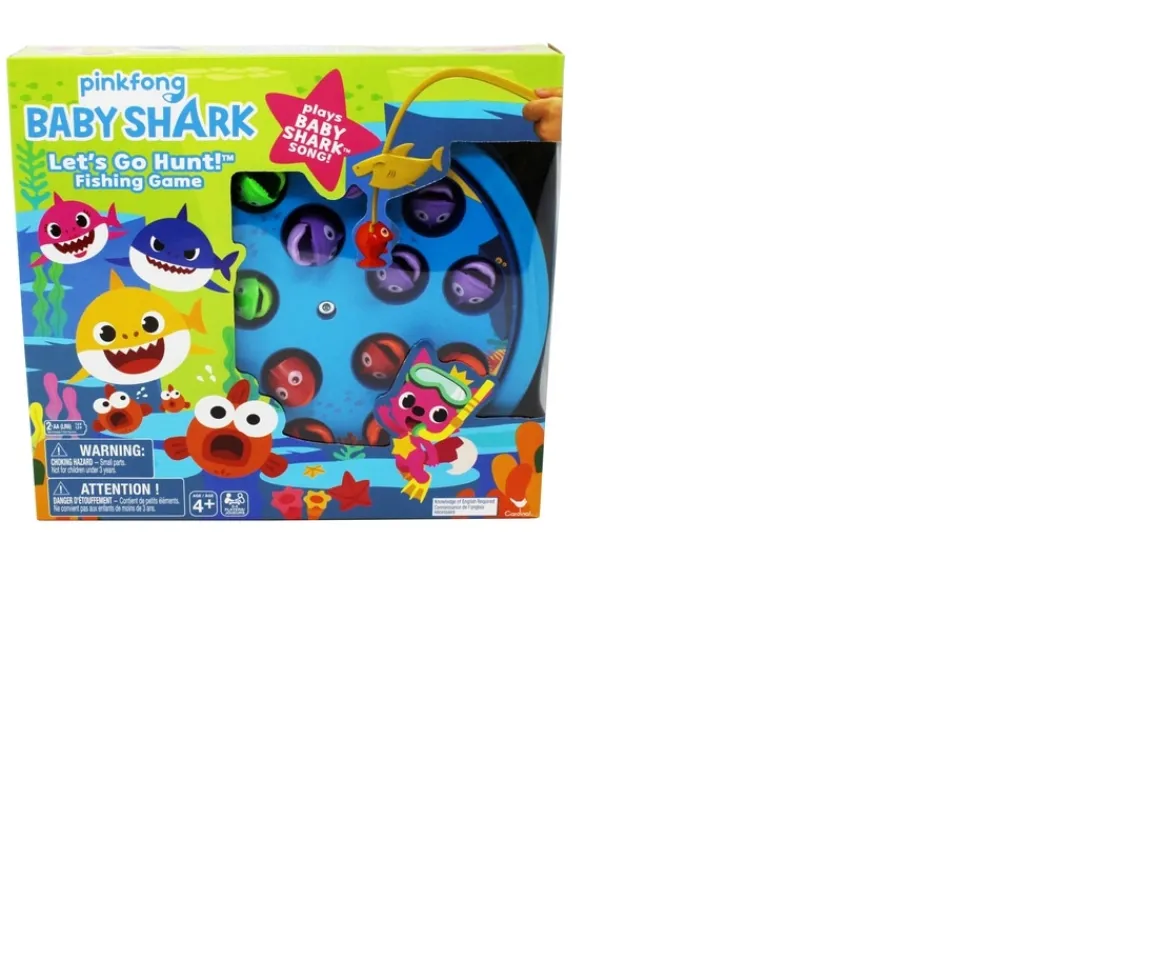 LET’S GO HUNT! The classic Fishing Game has never been more fun! This Baby Shark Fishing Game features four adorable characters from the global phenomenon—Mummy Shark, Daddy Shark, Grandma Shark, and, of course, Baby Shark! It’s your job to grab the fish with your Baby Shark-themed fishing rod as the board spins—the player who reels in the most fish wins! Plays the Baby Shark Song. Recommended for two to four players, ages four and up. Requires two AA batteries (not included).