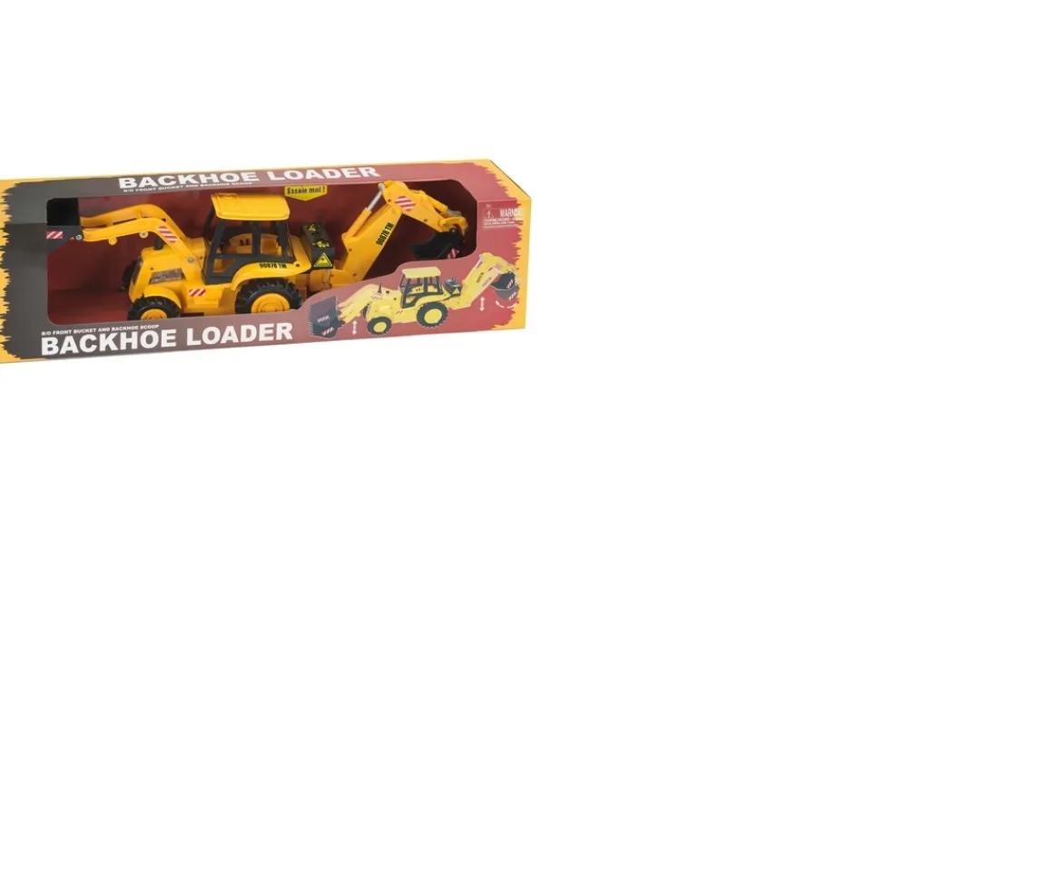 Free wheel loader with lights and engine sounds. Features moving back hoe and front bucket.