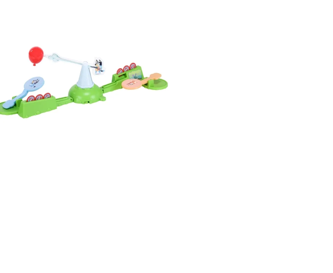 Now you can play one of Bluey and Bingo’s favourite games with your friends and family with the Bluey Keepy Uppy Game! This fun and action filled game brings all the laughs of Keepy Uppy into a tabletop skill and action game. Play Keepy Uppy indoors with no risk of breaking anything or having to make space, because all the fun and excitement is on the table! The balloon flips and spins around the board in this action-packed fun motorised game.Players must be quick to bop the balloon and keep it up in the air using their paddles! Players can play as Bluey, Bingo or Chilli (Mum). If it hits their hedge, they lose a balloon (Pop!) token. The last player with tokens wins the game! Laughter-packed and exciting to play, kids can easily play this game by pressing the character paddles down to bop the motorised balloon and keep it up in the air! Your child will be a ‘Keepy Uppy’ expert like Bluey and Bingo in no time! A great game for 2 or 3 Bluey fans to play together from ages 4 years and up.