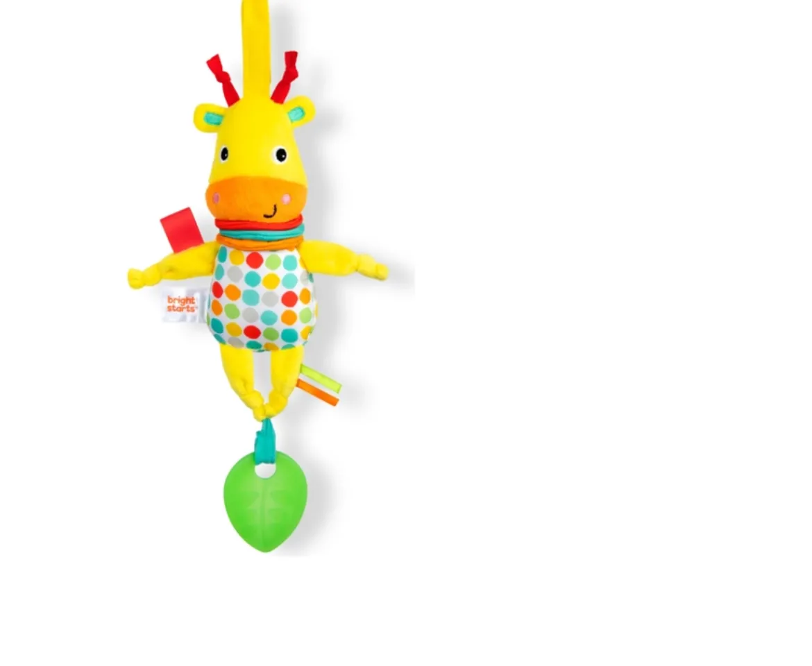 The Bright Starts Pull, Play & Boogie activity toy will bring joy to you and baby as they learn and play all at once! A gentle tug on the leaf sends the giraffe pal stretching. Watch as its body expands and slowly contracts to the tune of 60-second joyful melodies.Baby Musical ToysEncourage the development of fine motor skills, visual engagement, and cause and effect with this stretch-and-pull musical baby toy. Baby will love the soft variety of fabrics that enable tactile exploration and provide comfort, the bright colours of the giraffe and accessories, and the giggles this toy brings!Take it With YouThis baby musical toy is soft and sweet, and features an included link. This plush giraffe pal will hang around anywhere you or baby go. Easily attaches to strollers, carriers, and more to engage baby and get them exploring for fun and skill development during on- the-go travel.Soft Toys for BabiesThis friendly giraffe friend will become one of yours and baby’s favourites. This baby musical toy is recommended for babies aged infant and up. Wipe clean with damp cloth and mild soap. Air dry. Do not immerse in water. Get yours today!This friendly giraffe friend will become one of yours, and baby’s, favourites. Recommended for babies aged infant and up. Wipe clean with damp cloth and mild soap. Air dry. Do not immerse in water. Get yours today!