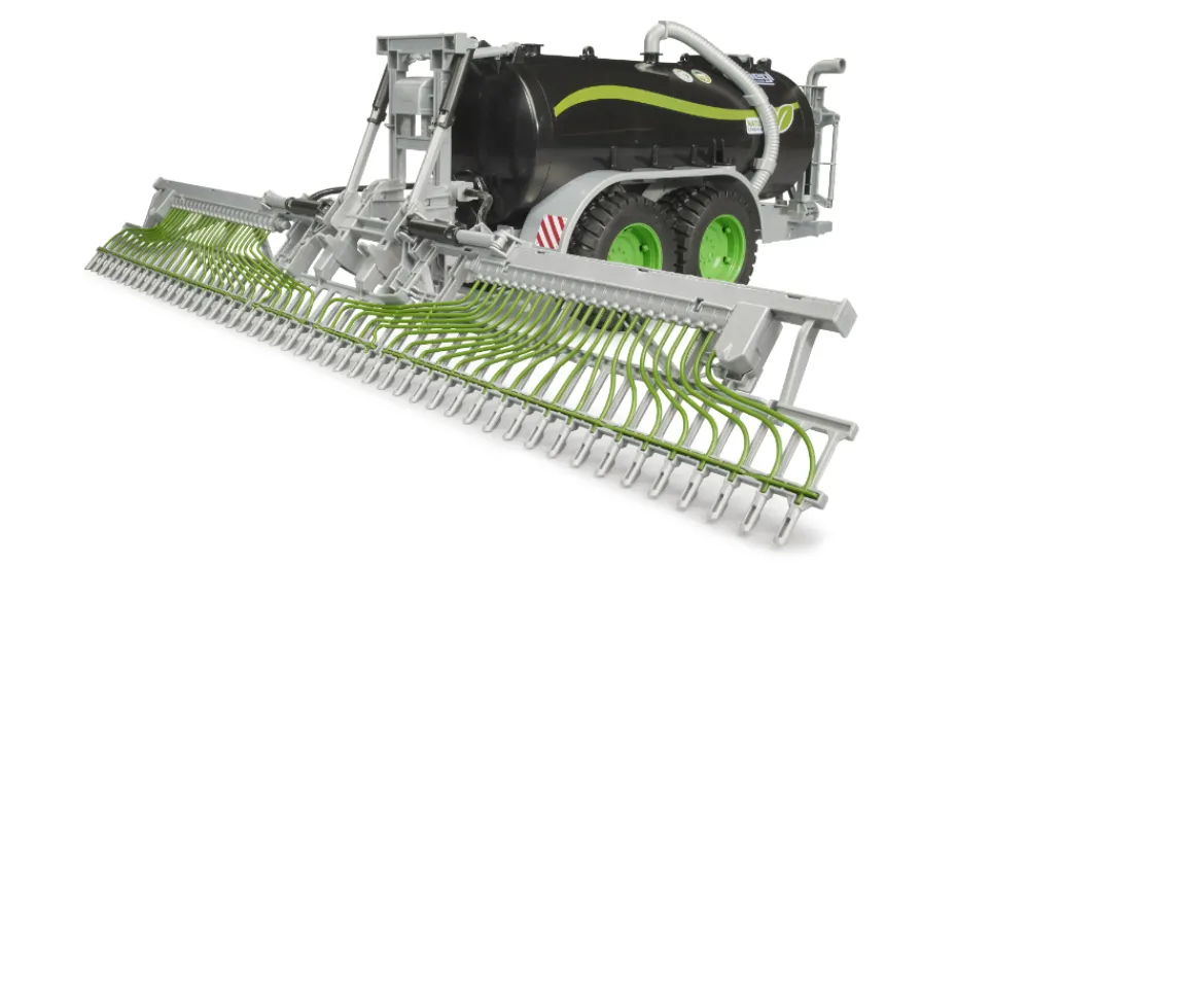The new barrel tanker from Fliegl expands BRUDER’s agricultural range to include the latest fertiliser technology. This detailed model from BRUDER is equipped with a towing hose distributor. The integrated tank can be filled with water and closed with a cap. The tanker is emptied through an outlet valve at the rear of the tanker. For road transport, the towing hose distributor can be folded in and folded out again in field operation. The BRUDER 3000 and 4000 series tractors are the perfect tractor for this impressive tanker.