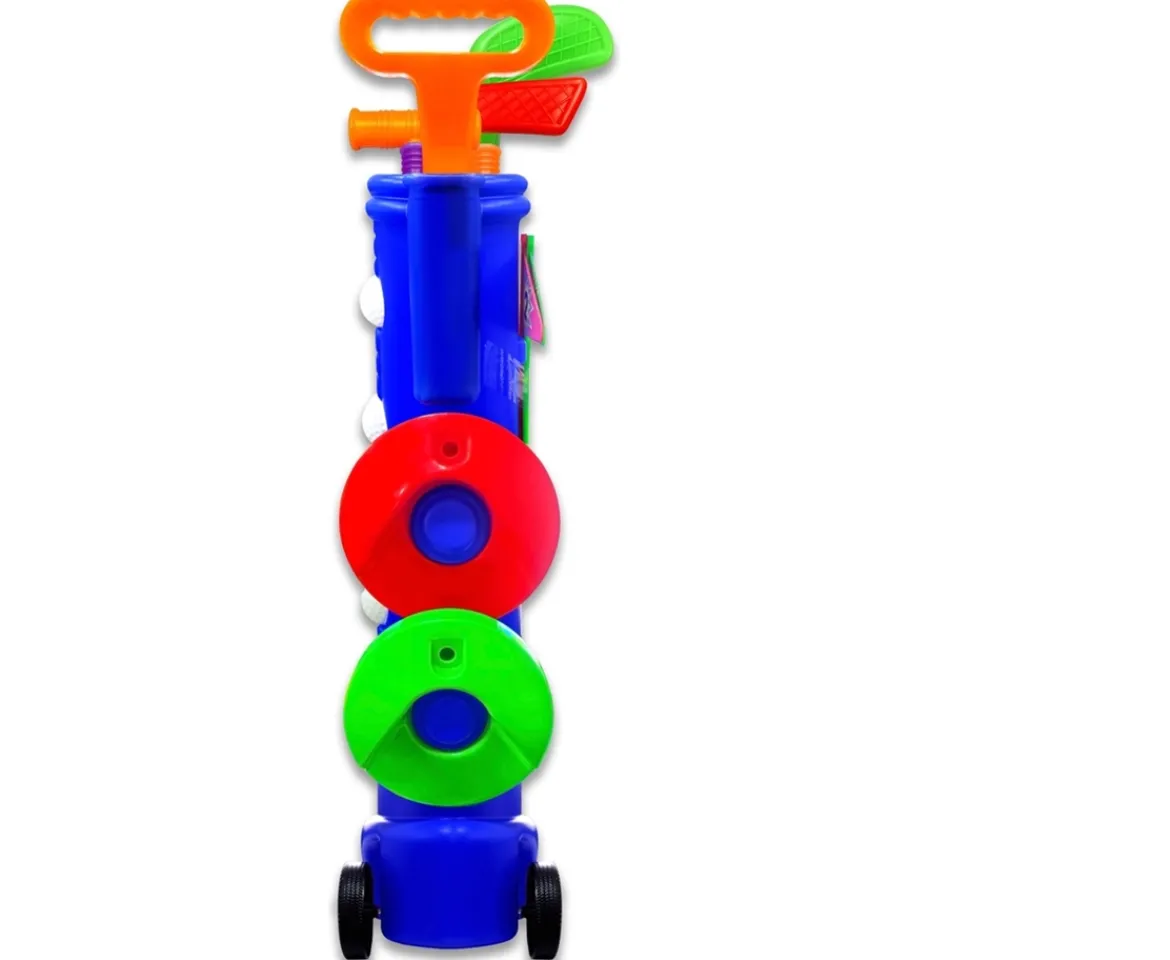 Whether used indoors or outdoors, this Far&Near iSport Caddie Golf Set delivers superb gameplay as it introduces your children to a realistic, challenging and fun sport. This golf set will provide your child with hours of fun while practicing their golf drive.It includes a practical golf cart with 2 wheels and a handle for easy carry, 3 colourful golf clubs of different shapes and sizes, 4 balls and 2 practice holes. It’s an ideal gift for birthdays, Christmas or special occasions.