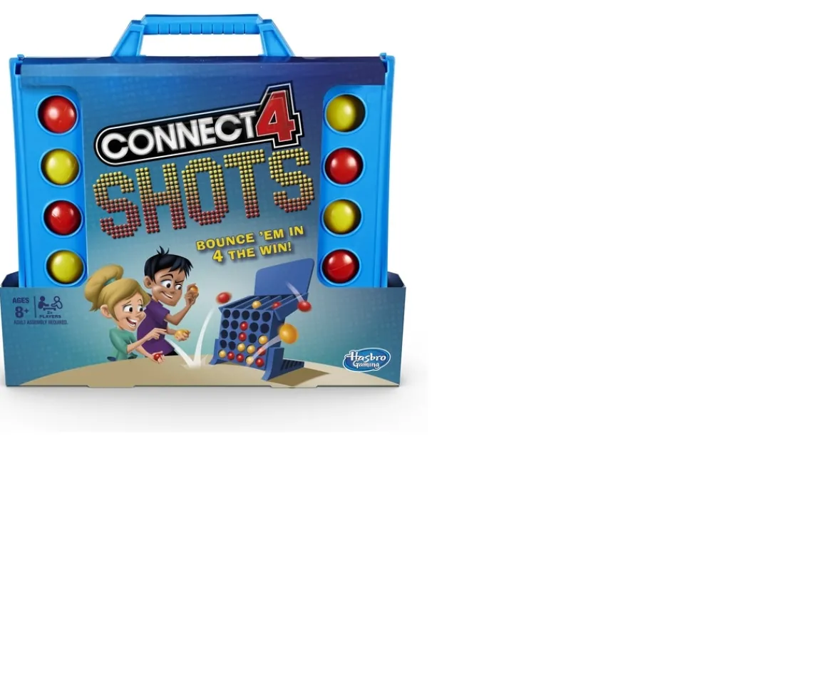 Bounce ’em in for the win! The Connect 4 Shots game is fast-paced, rapid-fire fun in a race to get 4 shots in a row! Count down to start: 1-2-3…bounce! Two players bounce the lightweight, colourful balls into the grid at the same time. Remember, the balls must hit the table before going in. Keep bouncing balls until a player gets 4 in a row of their colour for the win. If players have bounced all the balls into the grid but neither got 4 in a row, bounce the tiebreaker orange ball to determine the winner. Then when the game is over, fold the grid into a handy storage case.