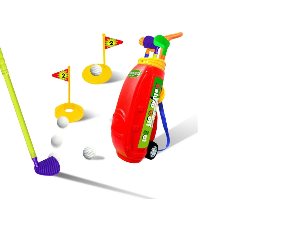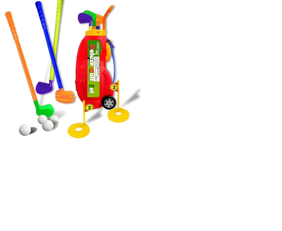 Whether used indoors or outdoors, this Far&Near iSport Deluxe Golf Set delivers superb gameplay as it introduces your children to a realistic, challenging and fun sport. More than just the fun it brings, this golf toy helps to promote kids’ physical and mental development, concentration and patience.It includes a practical golf cart with 2 wheels, 3 colourful golf clubs of different shapes, 4 special balls and 1 practice hole. It’s an ideal gift for birthdays, Christmas or special occasions.