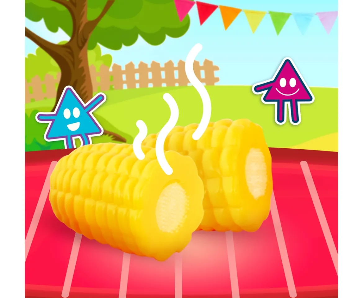 - Contents: 2x knives, 2x cutting boards, 1x carry basket, 2x carrot, 2x corn, 2x tomatoes, 2x potatoes, 2x mushrooms, 2x green peppers, 2x cucumbers, 2x onions, 2x pear, 2x oranges, 2x red apples, 2x bananas, 2x slices of watermelon, 2x bunch of grapes, 2x strawberries & 2x kiwis