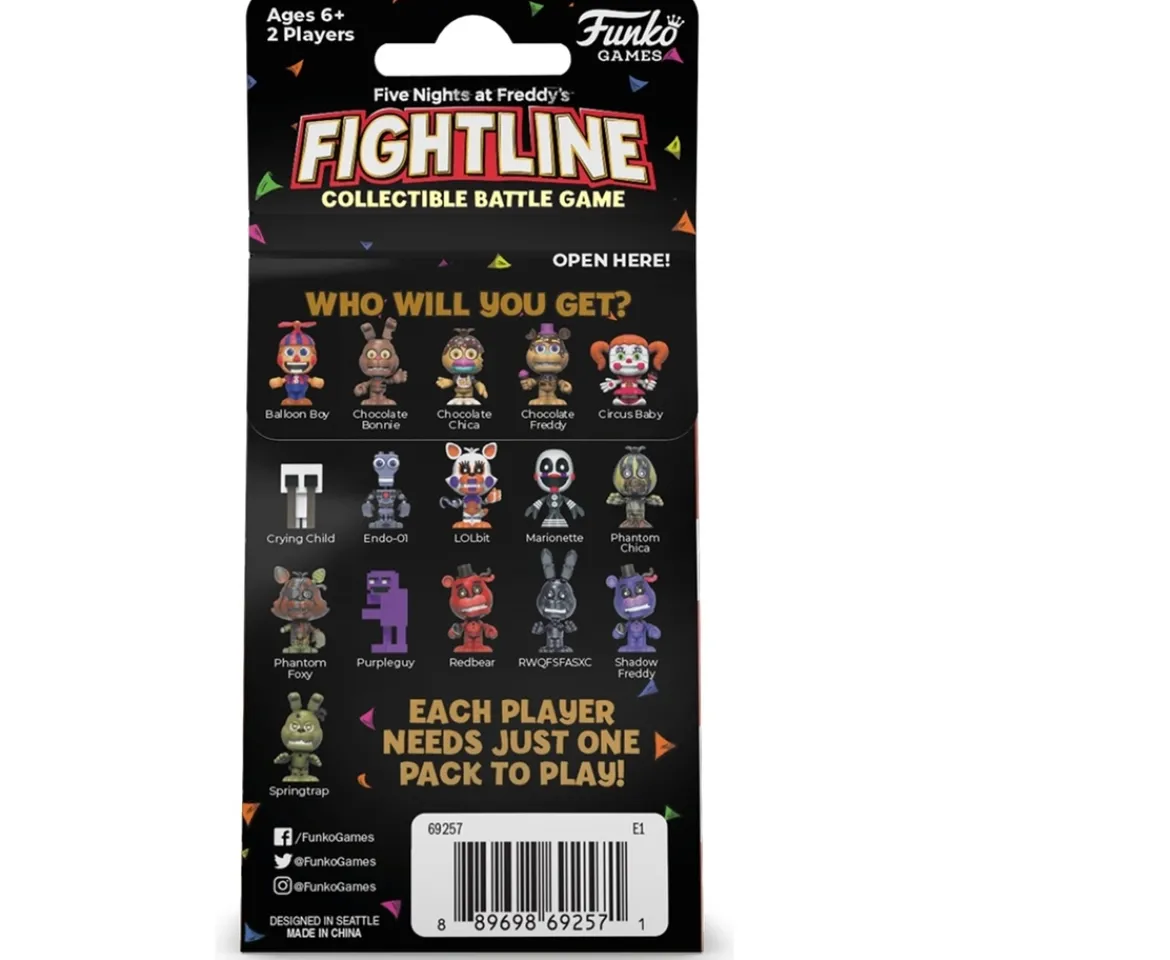 Grab a friend and go head-to-head in the ultimate custom fight! Team up with your favourite Five Nights at Freddy’s characters, including fan favourites from across the entire franchise.Build a team that can take down your opponent, spend Faz Coins to use character powers, and be the first to score 7-point tickets! Each Five Nights at Freddy’s FightLine Character Pack includes one of your favourite characters.