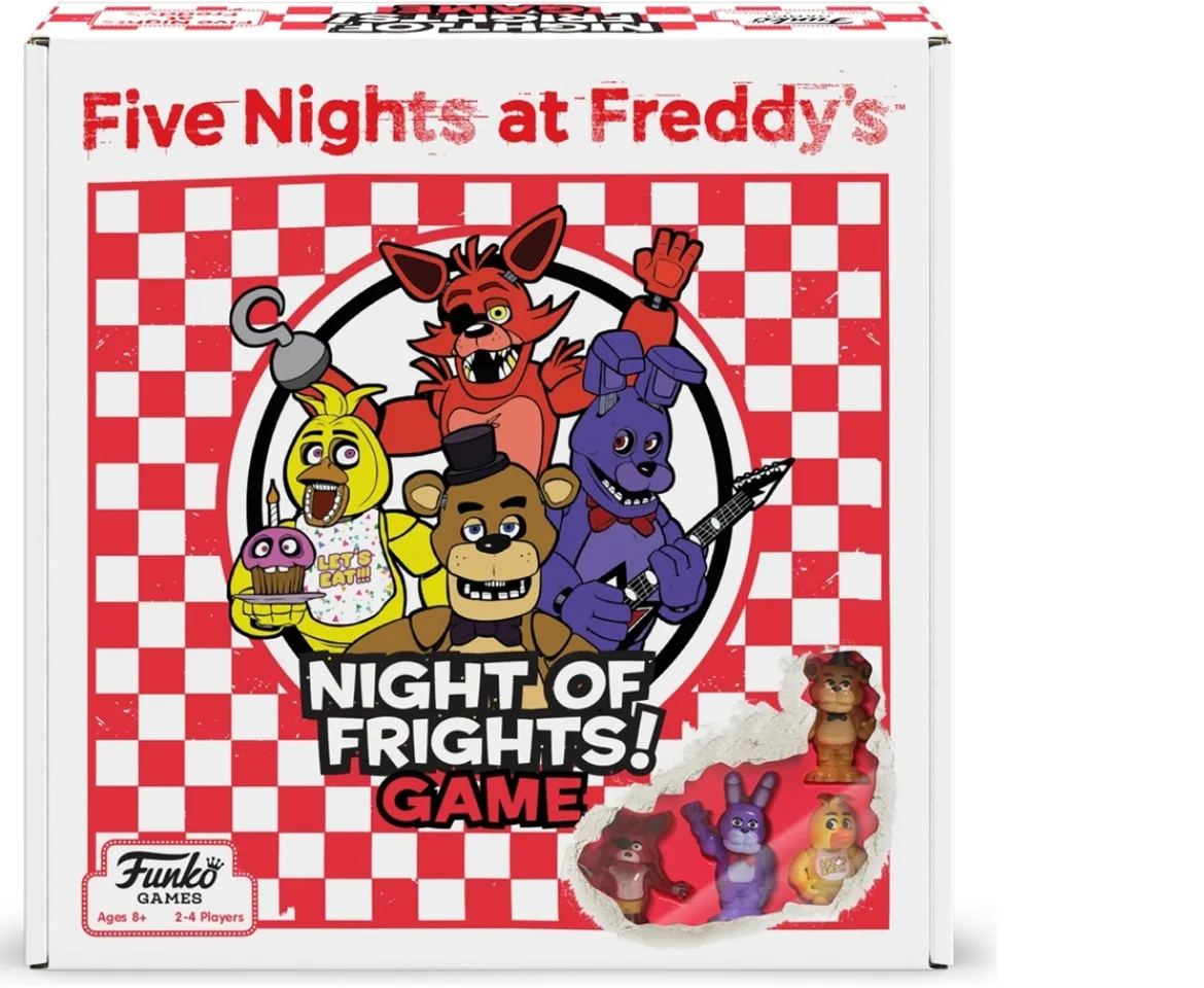 Five Nights at Freddy’s Night of Frights! GameYou’re the stars of Freddy Fazbear’s Pizza! Play as one of the terrifying animatronic characters and use your unique power to gain the upper hand. Creep through the restaurant gathering items. Make yourself scarier and get to the security office.Compete to collect pizza and cake, use your unique abilities and out- scare the other animatronic. Suspenseful push-your-luck gameplay keeps everyone guessing until one player captures the guard & wins!
