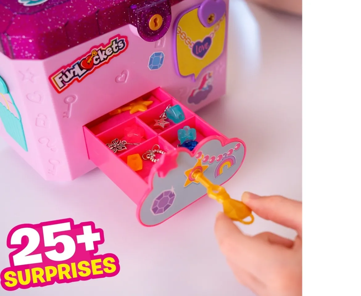 Discover the treasure and get creative making jewellery with the FunLockets Secret Jewellery Box with Message Recorder! Whether you are looking for a birthday gift, christmas gift or other event, the Funlockets Jewellery Box is the perfect gift for girls aged 5 years and over who want to get creative and use their imagination! With hidden keys and over 25 surprises included for your little one to discover, this secret jewellery box is fun and unique, and the perfect addition to any bedroom! Batteries required.