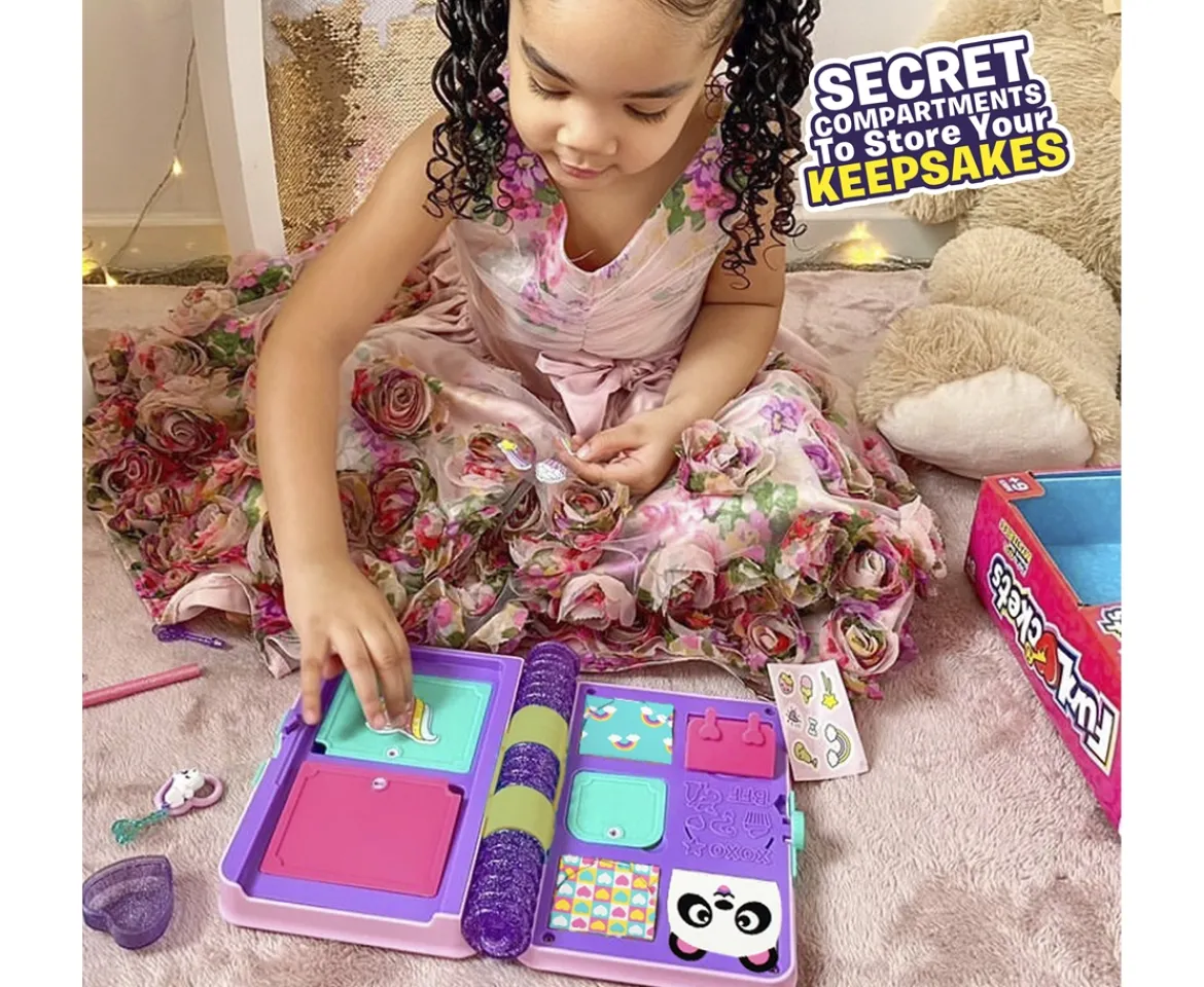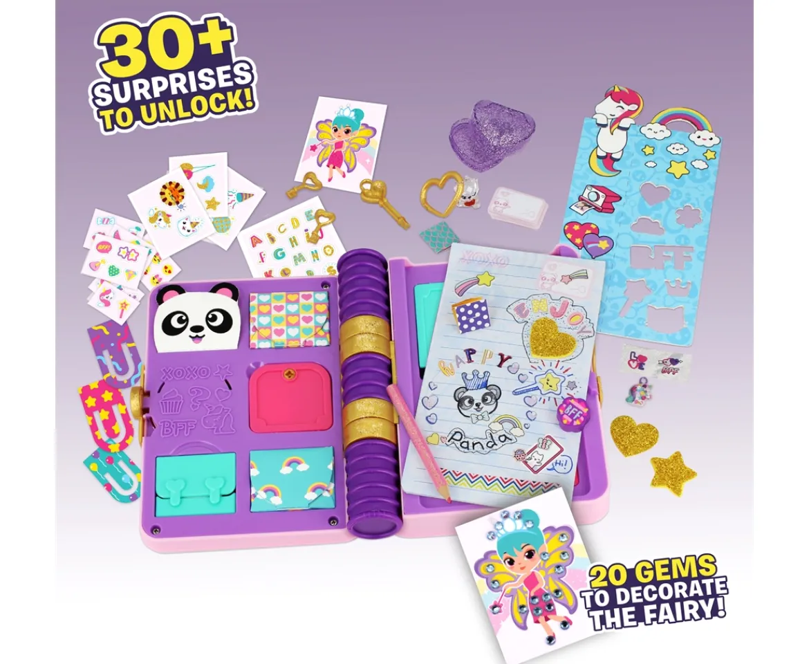 - LOCKABLE CASE WITH SECRET HEART BOX: Find the unique way to unlock your journal – then write your thoughts inside and create stories and drawings with stickers, stencils and glittery accessories.