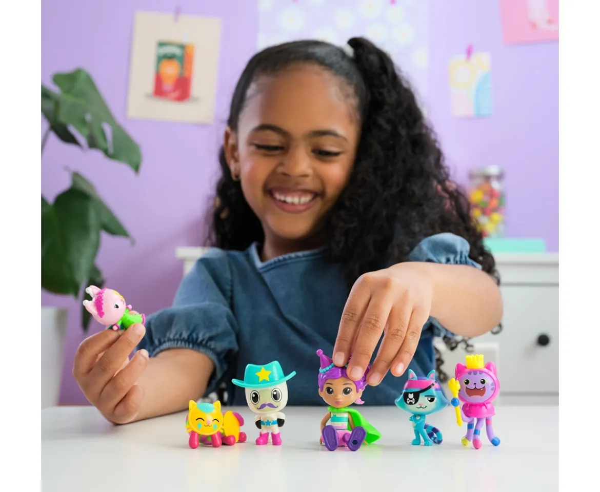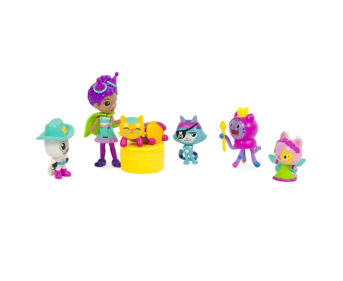 - 6 GABBY’S DOLLHOUSE TOY FIGURES: This special-edition celebration-themed toy figure set features Gabby Girl, DJ Catnip, Catrat, Pandy Paws, Pillow Cat and Kitty Fairy, for a Cat-errific Celebration