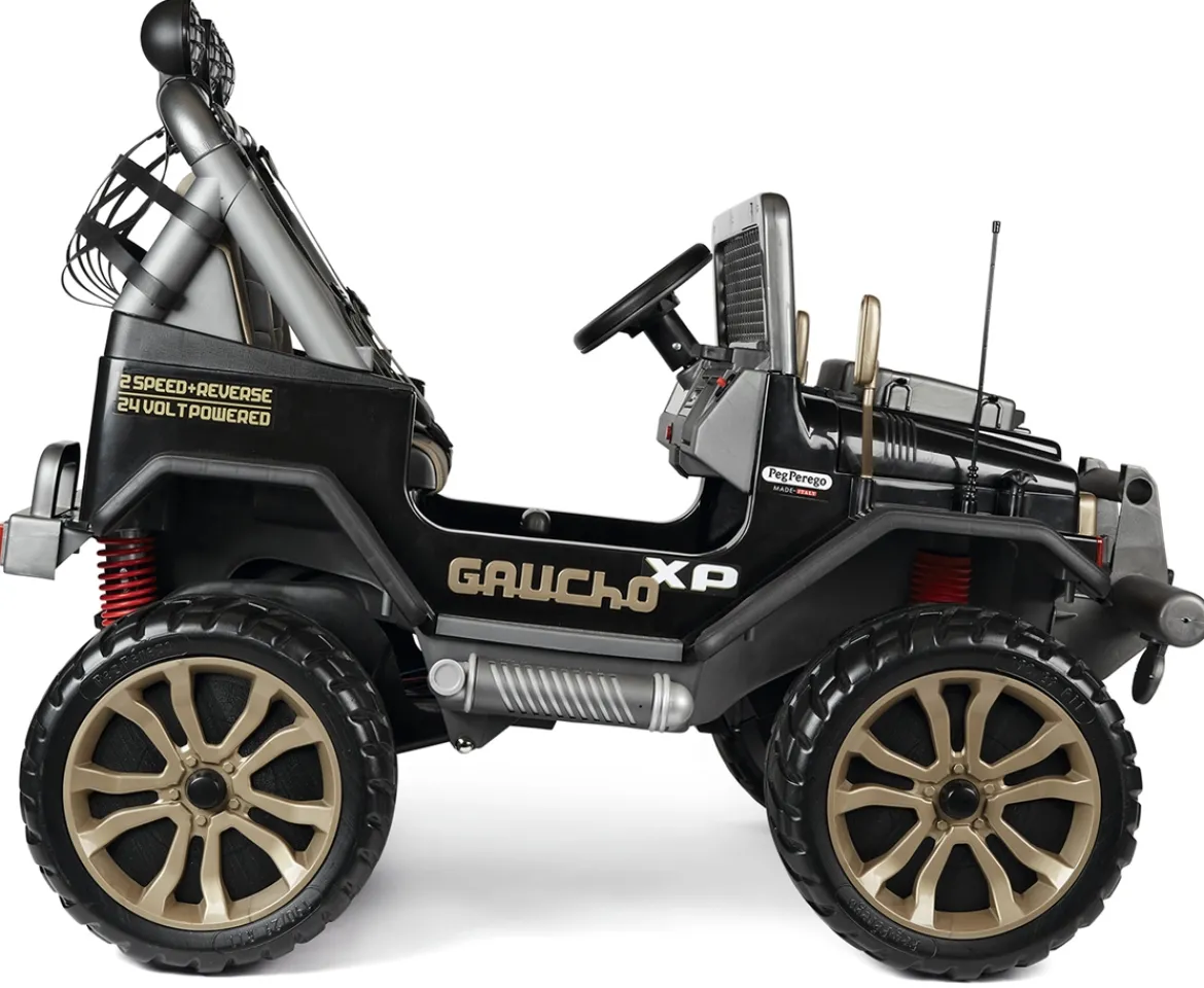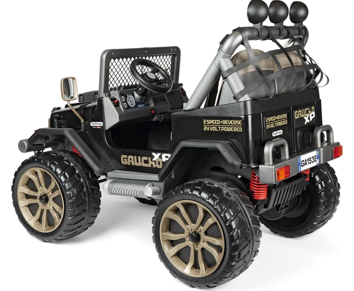 The Gaucho XP off-road vehicle for children is truly astounding! Lights, sounds, multi-functional radio and a horn are some of the features you’ll love, but that’s just the beginning. Gaucho XP will impress you with its amazing Extreme Performance (XP). Rest assured, your child is in for a high-performance driving experience.Long lasting and fitted with two 480W motors, 3 year-olds and up will enjoy endless fun, guaranteed. A genuine all-Italian gem, Gaucho XP operates with a 24V/8Ah/200Wh rechargeable battery.