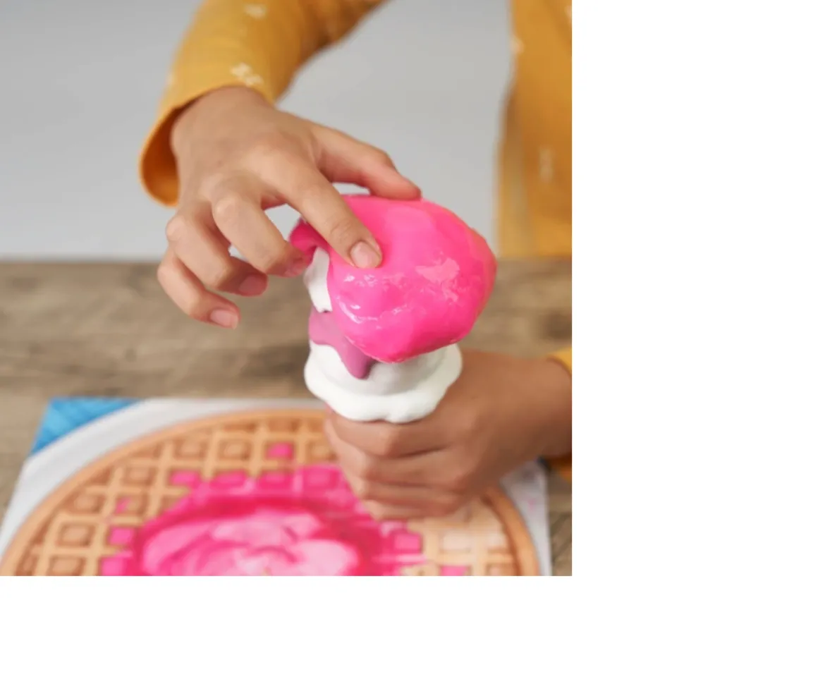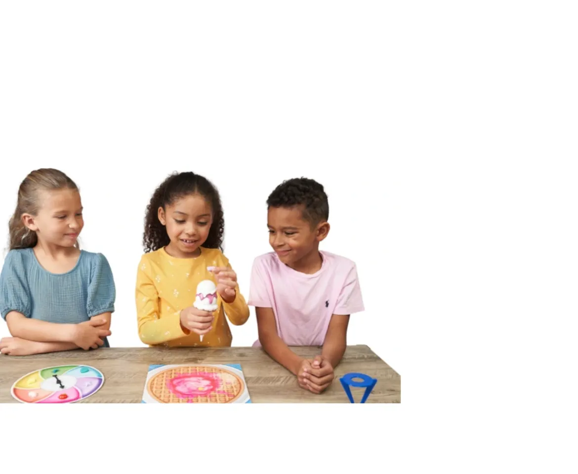 Here’s the scoop! This ice cream cone is melting fast! The first player to place all their toppings in the ice cream slime and add the cherry wins! But watch out for that fly – yuck! When the ice cream starts to drip, you gotta be quick! Includes Gameboard to protect surfaces, 1 Spinner and Spinner Arrow, 18 Slime Charms, 1 Ice Cream Cone, 1 Cone Stand, 1 Ice Cream Slime in Resealable Container, and Complete Instructions. Recommended for 2-4 players, ages 4 and up.