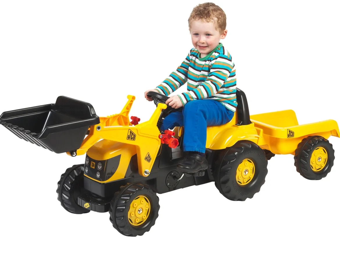 This JCB Tractor Trailer and Loader ride on, will be guaranteed to|keep your little ones entertained for hours. Your little one will love|the feeling of driving around in a fully working toy JCB Tractor and|trailer, only from JCB. Imagine the excitement when they first open|the box and see this massive tractor, begging to be played with.
