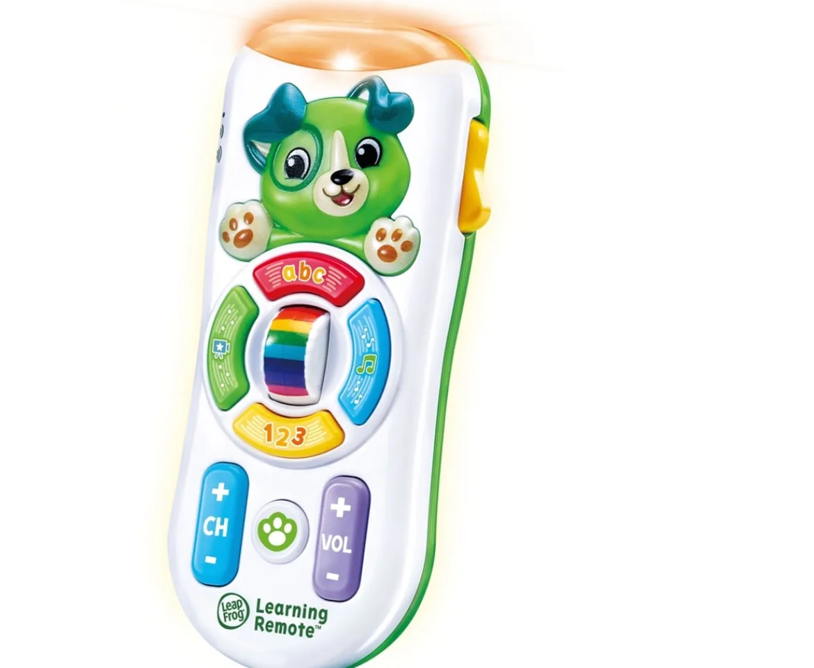 There’s so much fun and learning little ones can do with the LeapFrog Channel Fun Learning Remote! Featuring puppy pal Scout, this friendly character is always at their fingertips to entertain, encourage and help children explore.Press up, down, left or right to hear the A-B-C song, listen and move to different dance styles, find out about fun programs and learn cool language phrases. Press the volume button to hear softer and louder volume phrases. They can press the channel button to scroll through 10 different channels with fun facts about each. The rainbow colour roller prompts learning with a different phrase and song for each colour.