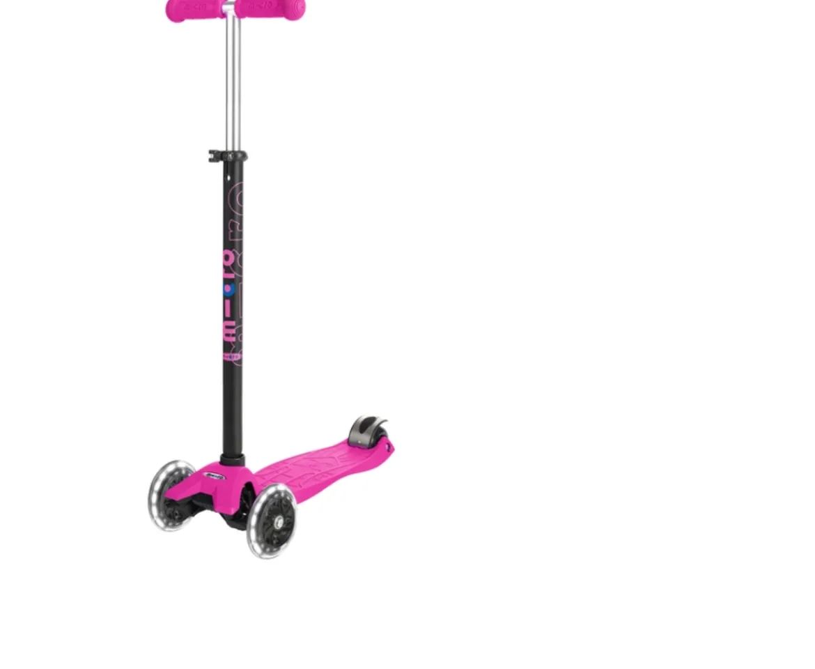 The exclusive Maxi Micro Plus is the latest addition to the prize- winning Micro Scooter range. This range features light up wheels powered by the energy kids use when they scoot. Micros are built to last, built to outlast. These scooters will see your child through every adventure for years to come.Safe Scooting for KidsMade with robust parts, a Micro stands out from other scooter brands. ABEC 9 bearings in the wheels ensure a smooth and quiet ride. Thick, polyurethane puncture-free wheels and a flexible fibreglass reinforced deck combine to absorb bumps in the pavement. The Maxi Plus is made from aluminium and ABS (Acrylonitrile Butadiene Styrene) which means these kids’ scooters are light enough for kids to manage yet incredibly durable.Built for DurabilityUnlike other scooter brands, the handle grips on the Maxi Plus are toxin free, super-soft and durable. It means no matter what a child throws at it, these scooters will withstand it. The double-layer aluminium brake on the Maxi Plus has been specifically designed on the pressure point, giving extra security when your child brakes. The clever lean-to-steer scooting makes for a more intuitive ride and is quickly picked up by kids.