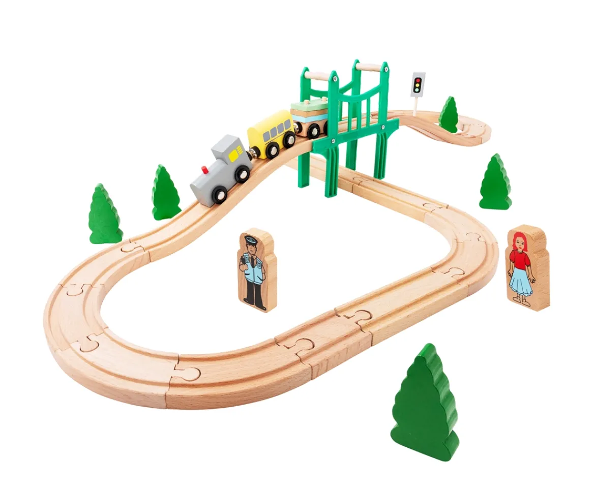 - MY FIRST RAILWAY SET – This "My First Railway" set is ideal if you are looking for a beginners wooden train set for your playful toddler. Playfully introduce your child into the world of wooden train sets.