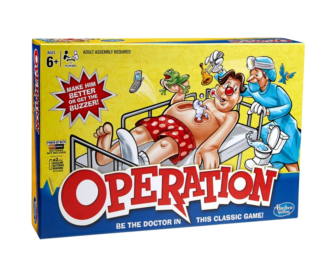 - CLASSIC OPERATION GAMEPLAY: A favorite kids game for generations! With the Operation electronic game, kids get to play "the doctor" and perform "surgery" to make Cavity Sam better–or they get the buzzer