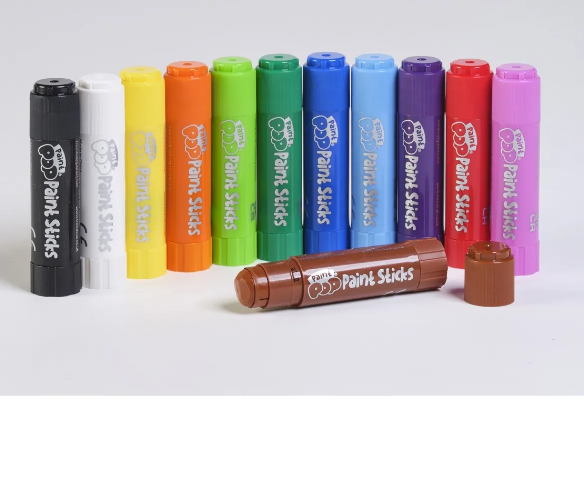 Paint Pop Paint Sticks are the perfect introduction to painting and doodling.They’re bright and colourful, with no mess, creating a happy experience for all!The chunky shape is easy for little hands to hold and the smooth, glide-on paintworks without needing water or brushes.Twist the stick and you’re ready to paint, whether at home or on your travels.Be creative on a wide range of surfaces including on paper, card, canvas,wood and even glass.Wipe clean from glass andwhiteboards using a damp cloth.