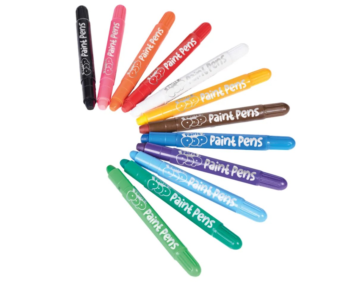 “Paint Pop Paint Pens are fast drying, mess free painting! Finer tip allows more detail and works without needing water or brushes!12 pack of vibrant colours”