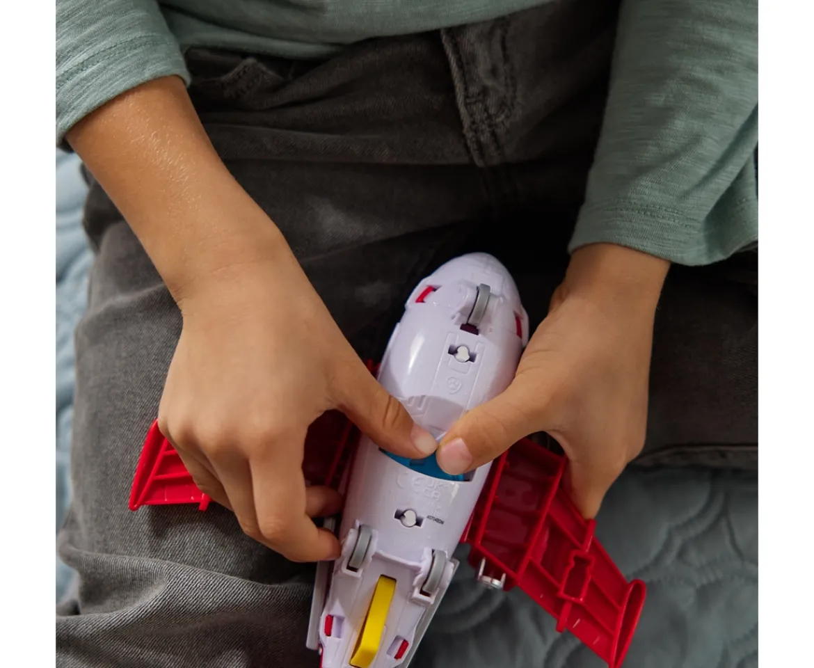 - FIRE RESCUE AEROPLANE: Clip Marshall into position in the cockpit before taking off on your mission, then squeeze the lever on the tail to launch your water disks and save the day