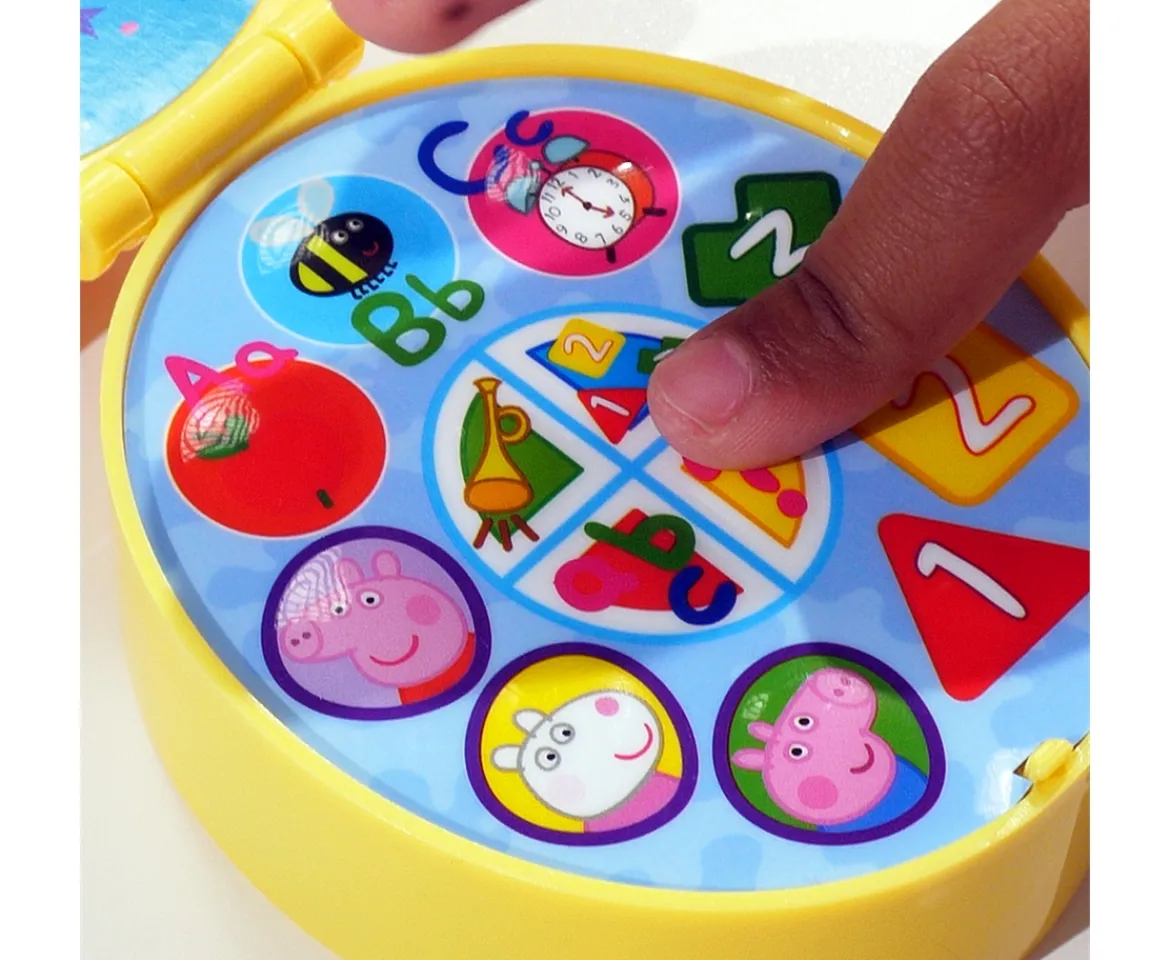 Have fun and learn with 4 activities with this Light Up Smart Pad. Flip up the lid and Peppa will ask you lots of fun questions to encourage learning about colours, numbers, shapes and objects. The touch sensitive screen makes exploration fun and easy to follow. Activity buttons light up and Peppa asks questions.