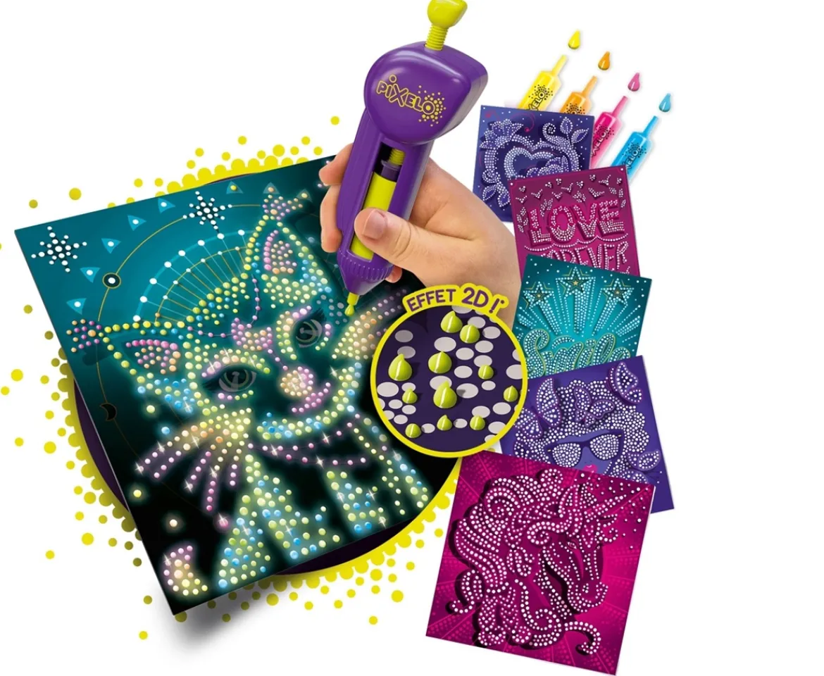Creativity meets illumination with the Pixelo Phospho 2D Glow in the Dark Art Set! Unlock a world of glowing possibilities and add fantastic relief effects to your drawings with phosphorescent gel. It’s the perfect drawing kit for budding artists with a unique creative twist!With this set, creating mesmerising glow-in-the-dark art is a breeze. Simply insert a cartridge into the mechanical Pixelo pen and press the button to release the gel points onto the predefined zones.Watch as your drawings come to life with a captivating, radiant glow! Once your masterpiece is complete, marvel at the stunning glowing effects that emerges in the dark.