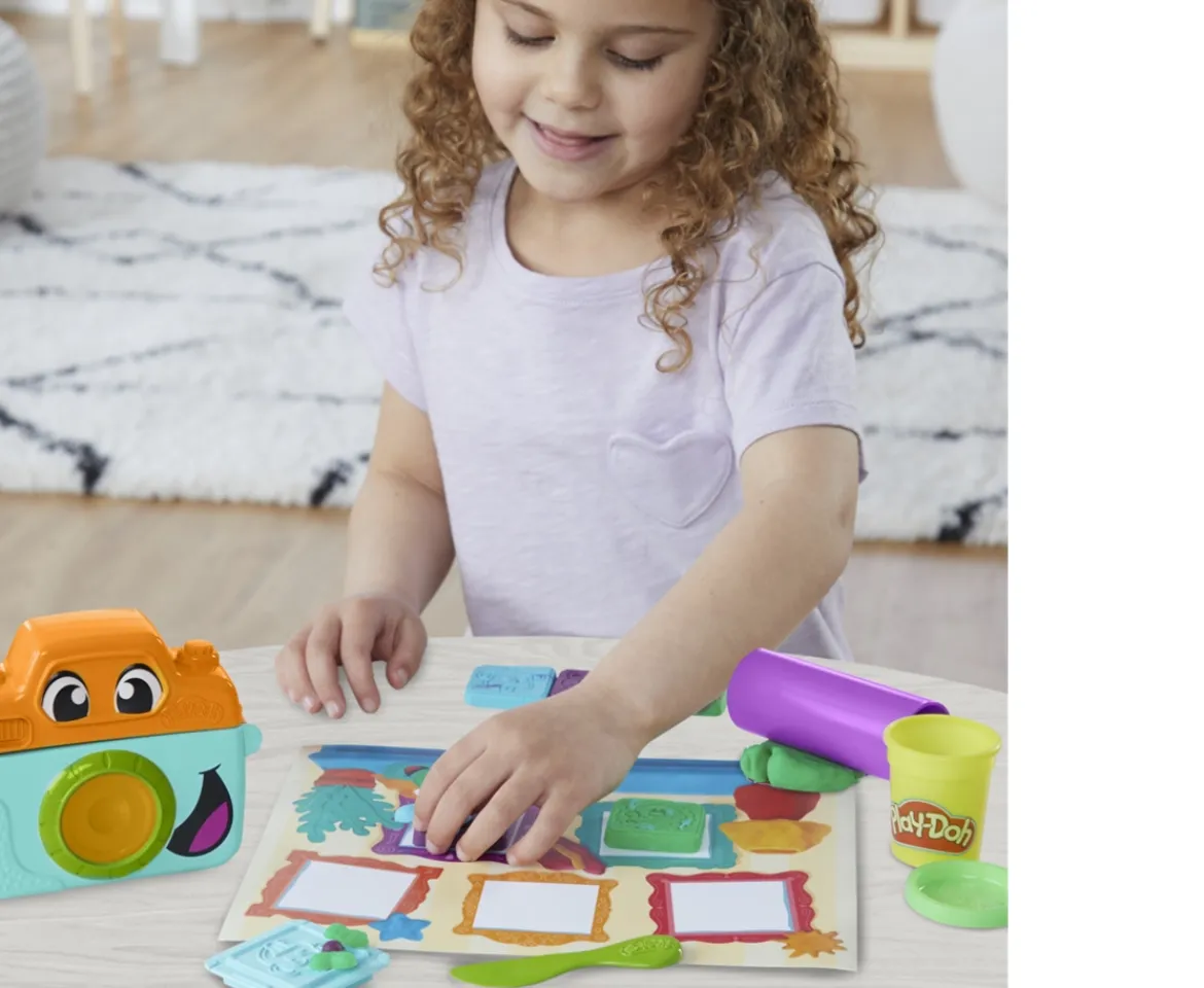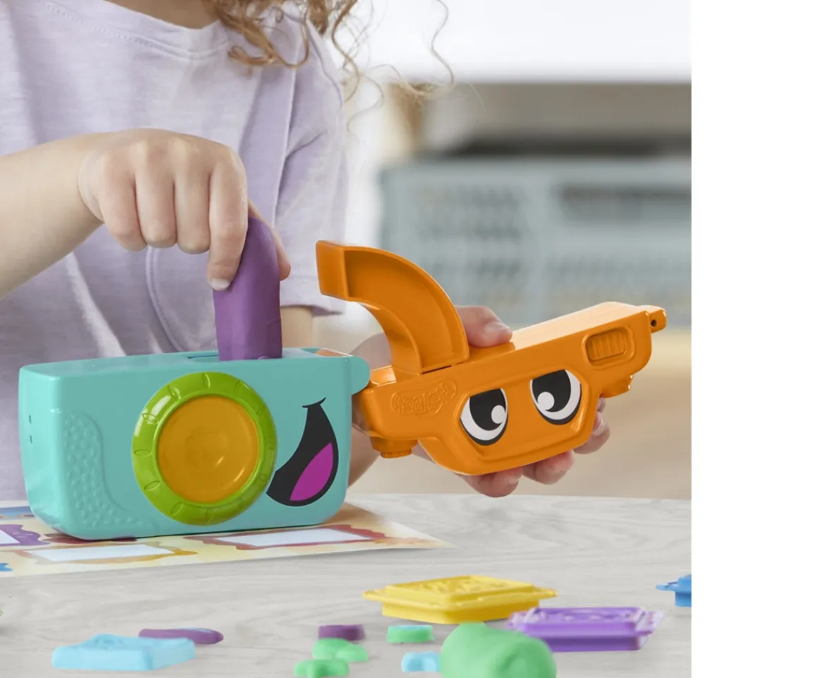 - Contents: x1 camera tool, x1 playmat, x5 face stampers, x1 roller, x1 knife, x3 cans of Play-Doh