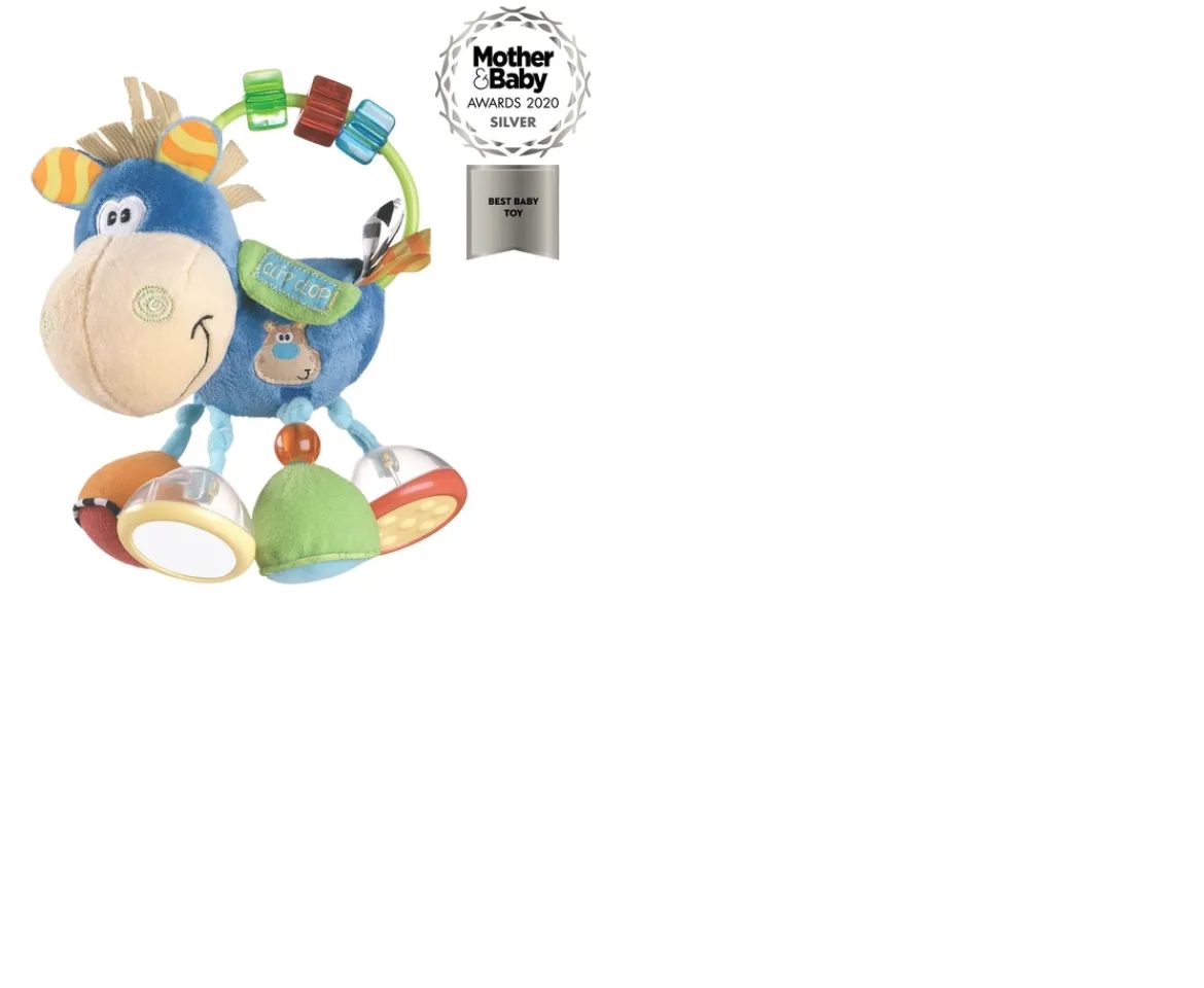 Shake, rattle and crinkle with the Playgro Clip Clop Activity Rattle. This colourful plush rattle features fun sounds, varied textures and playful patterns to keep baby’s senses engaged.The beads on the loop click and clack as baby learns to push them along, developing their fine motor skills. Little ones can lift the saddle flap for peek-a-boo fun and gaze into the mirrored hoof to explore reflections.Each hoof of the Playgro Clip Clop Activity Rattle features a different activity to discover. Rattle the colourful beads, explore crinkle sounds and hear one hoof chime as you play. Playing with sounds stimulates baby’s hearing and introduces cause and effect as little ones explore which hoof does what.Vibrant colours and patterns and the mix of plush, satin and ribbed fabrics stimulate baby’s sight and touch. The Playgro Clip Clop Activity Rattle is just right for encouraging little ones to grasp, shake, touch and rattle.