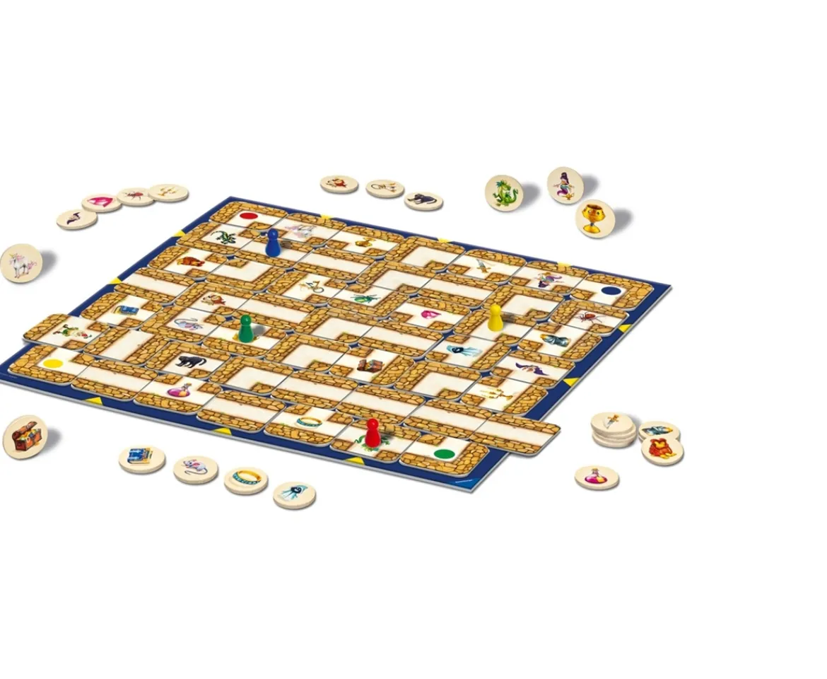 - Contents: 1x Playing board, 34x Maze cards, 24x Treasure cards, 4x Playing pieces