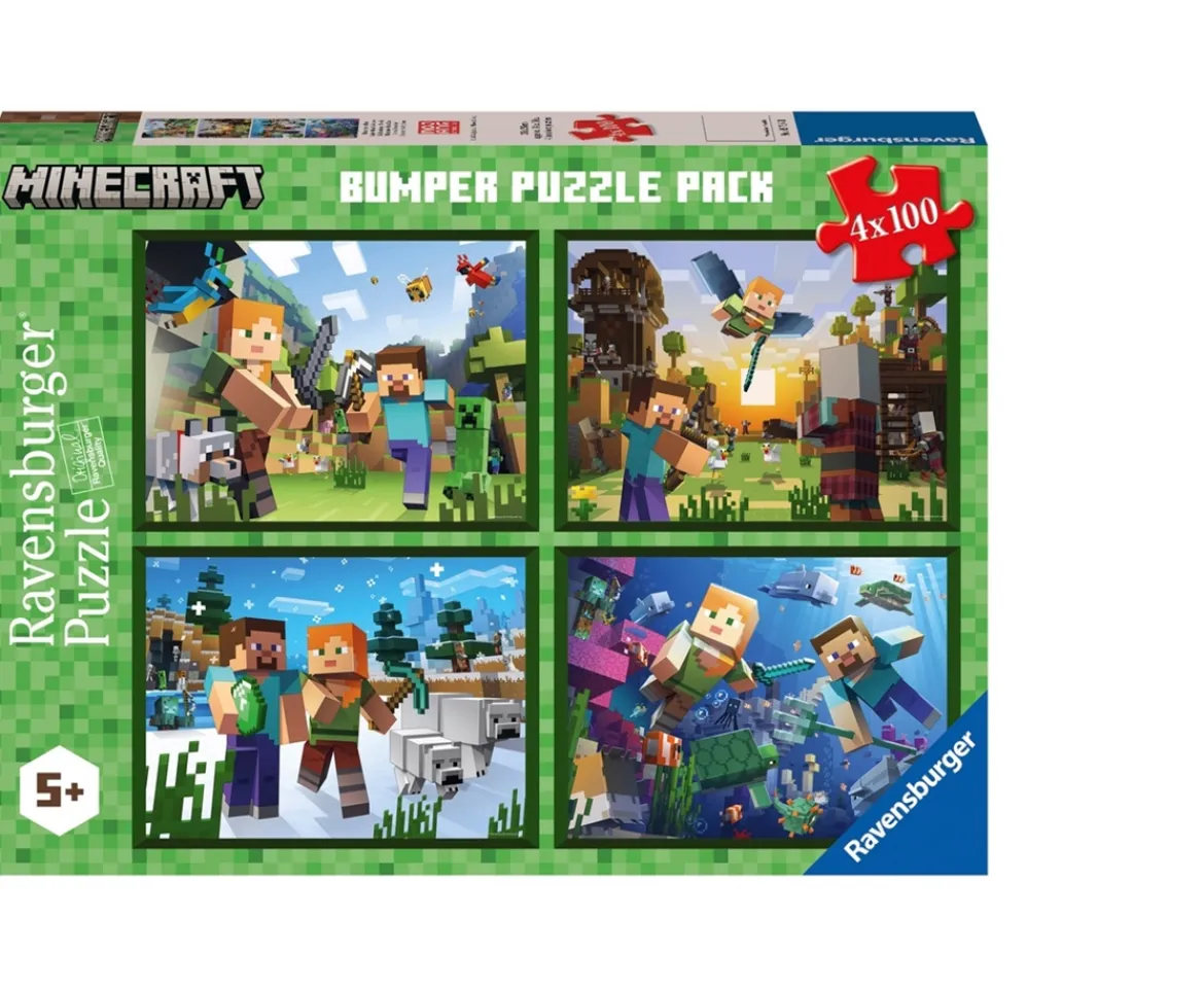 - Contents: 4 x 100 Piece Minecraft Jigsaw Puzzles