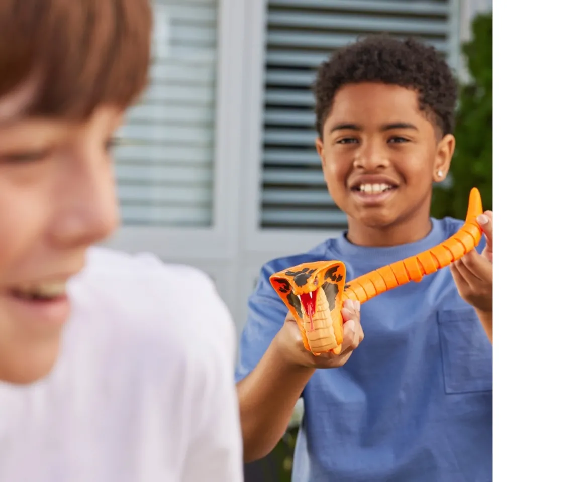 Are you brave enough to pick up the King Cobra? At 44.5cm long from tongue to tail, the ultra-real, lifelike Robo Alive King Cobra by ZURU features smart-movement technology to slither across the floor and hunt for its prey — watch out, it could be you!The gigantic King Cobra is as frightening as the real thing, with realistic snakeskin, tongue-flicking movements and super-detailed snake eyes! Made for epic pranksters and blood-curdling screams, unleash thrills with the giant Robo Alive King Cobra!Look for more ultra-real toys from the Robo Alive collection for even more incredible prank and play adventures! Each sold separately.