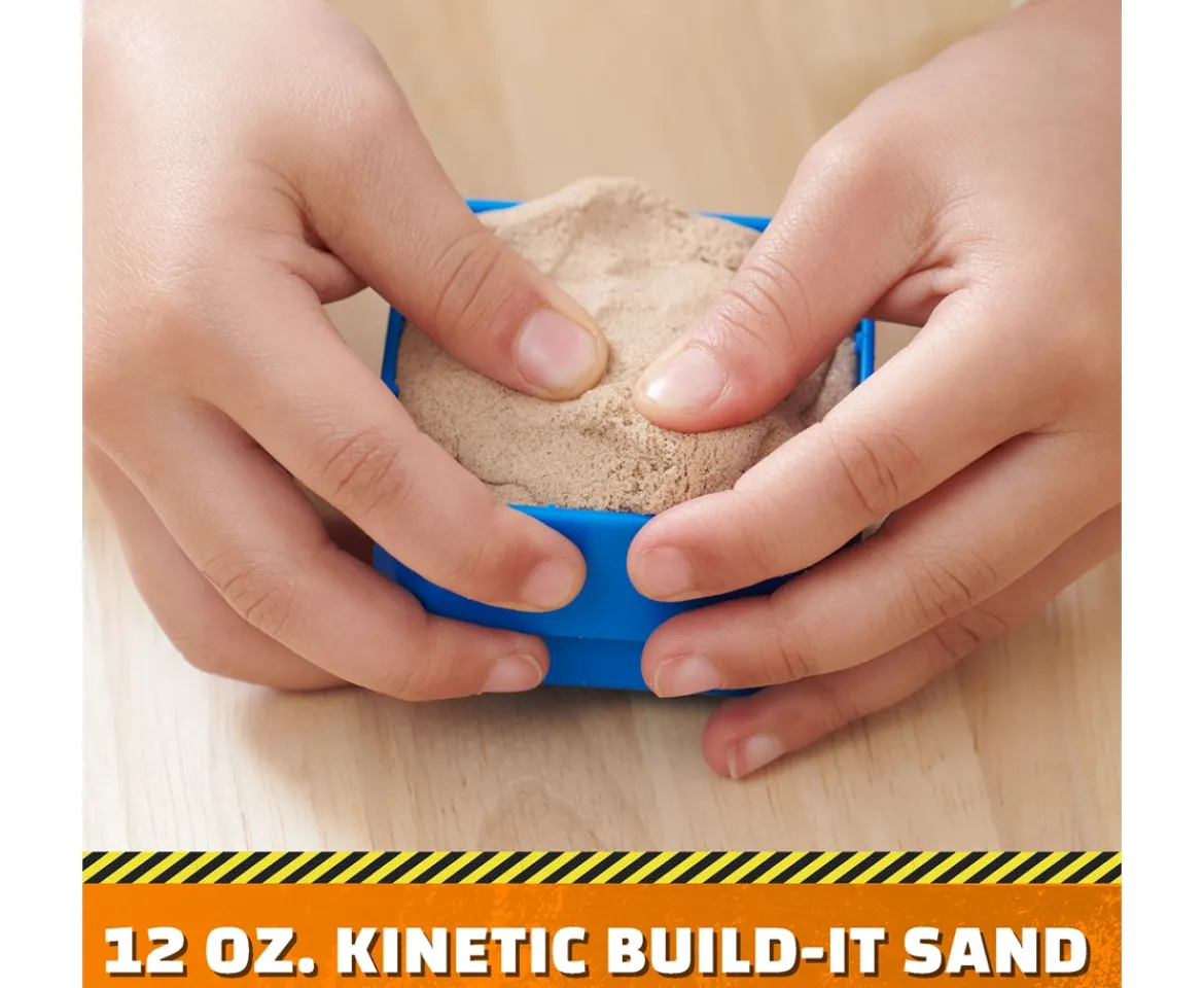 - INCLUDES KINETIC BUILD-IT SAND: Get 340g of the iconic play sand with this Playset. Kinetic Sand sticks to itself, which makes it a pretend-play construction toy that’s easy to mould and to clean up