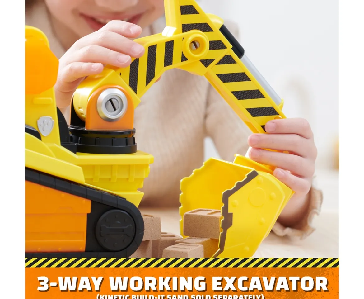 - KIDS’ CONSTRUCTION TOYS: Rubble’s toy bulldozer construction truck features a moving scoop and a working excavator toy that pivots, so kids can dig, scoop and load while creating building adventures