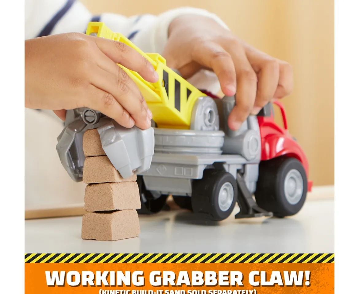 Charger is ready to “Grab it, Lift it, Move it” in his all-new, Rubble & Crew, Crane Grabber toy truck. Featuring real working wheels, and an extendable crane arm with a working grab claw, this crane toy truck is a must-have for fans of the PAW Patrol series that love the building and construction aspect of the show. Kids will love to team up with their parents to play with their favourite pup, use their imaginations to recreate their favourite building projects from the show, and then develop construction adventures and ideas of their own. For even more exciting pretend-play missions with construction toys, look for all of the Rubble & Crew Construction Truck Toys, plush toys and play figure sets with Kinetic Build-It sand (each sold separately). Enjoy non-stop building adventures with all of your favourite pups. Rubble & Crew construction and sensory toys are made to give kids and parents an opportunity to build, play and learn together. These toy figures and playsets make fantastic gifts for kids that love building toys and who are still developing their fine motor skills and imaginations. Bring the excitement of the Rubble & Crew series to life with Charger’s Crane Grabber toy truck.