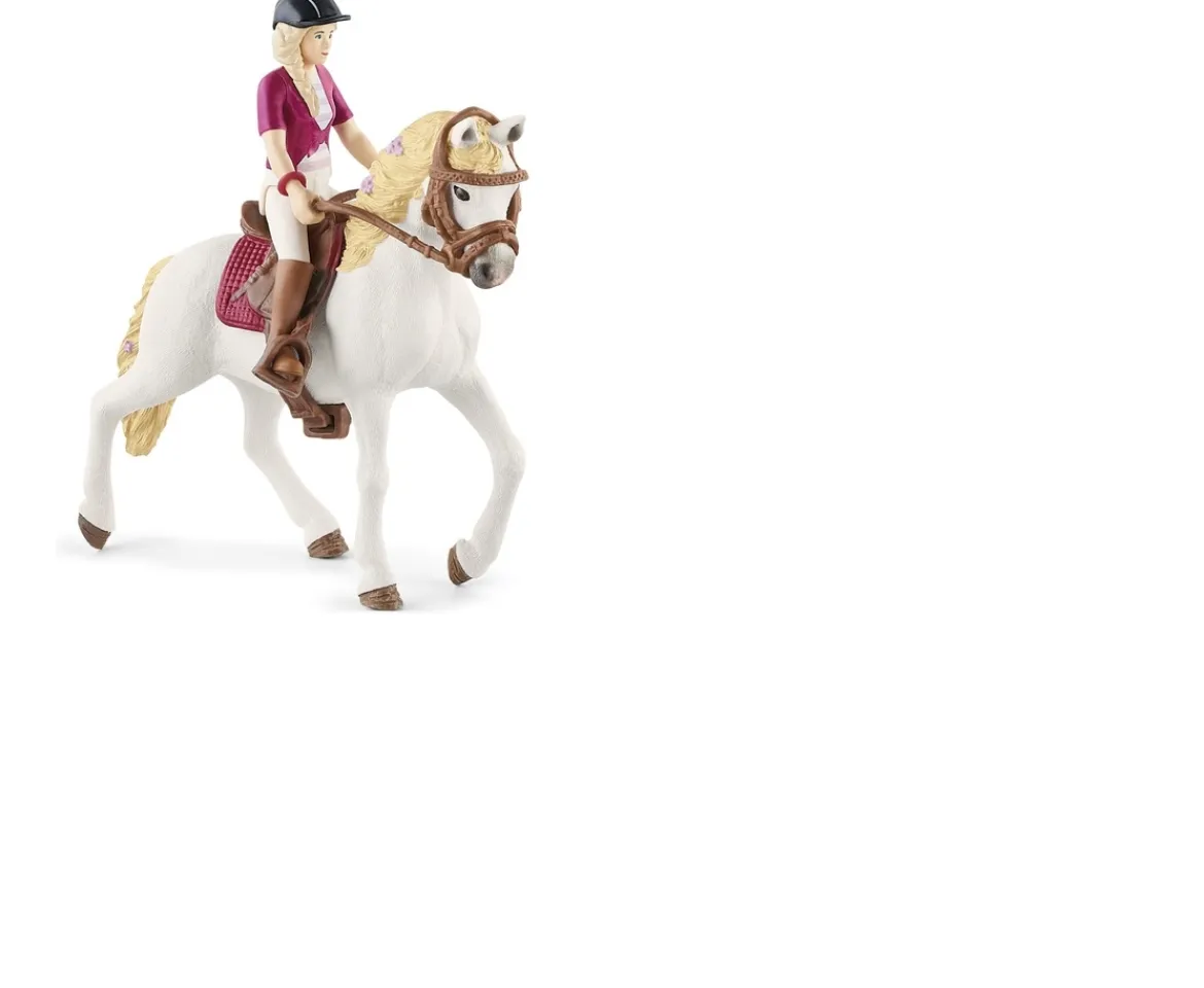 Horse Club Sofia & Blossom from Schleich Horse Club simply belong together! Ever since the Andalusian mare gave Sofia a playful nudge the first time they met, they have been an inseparable pair. The Sofia figurine is fully movable and can not only stand up, but also ride and sit. The saddle, bridle and reins are perfect fit for the temperamental horse figurine, and Sofia wears a riding helmet and a magenta Horse Club armband – their club badge.