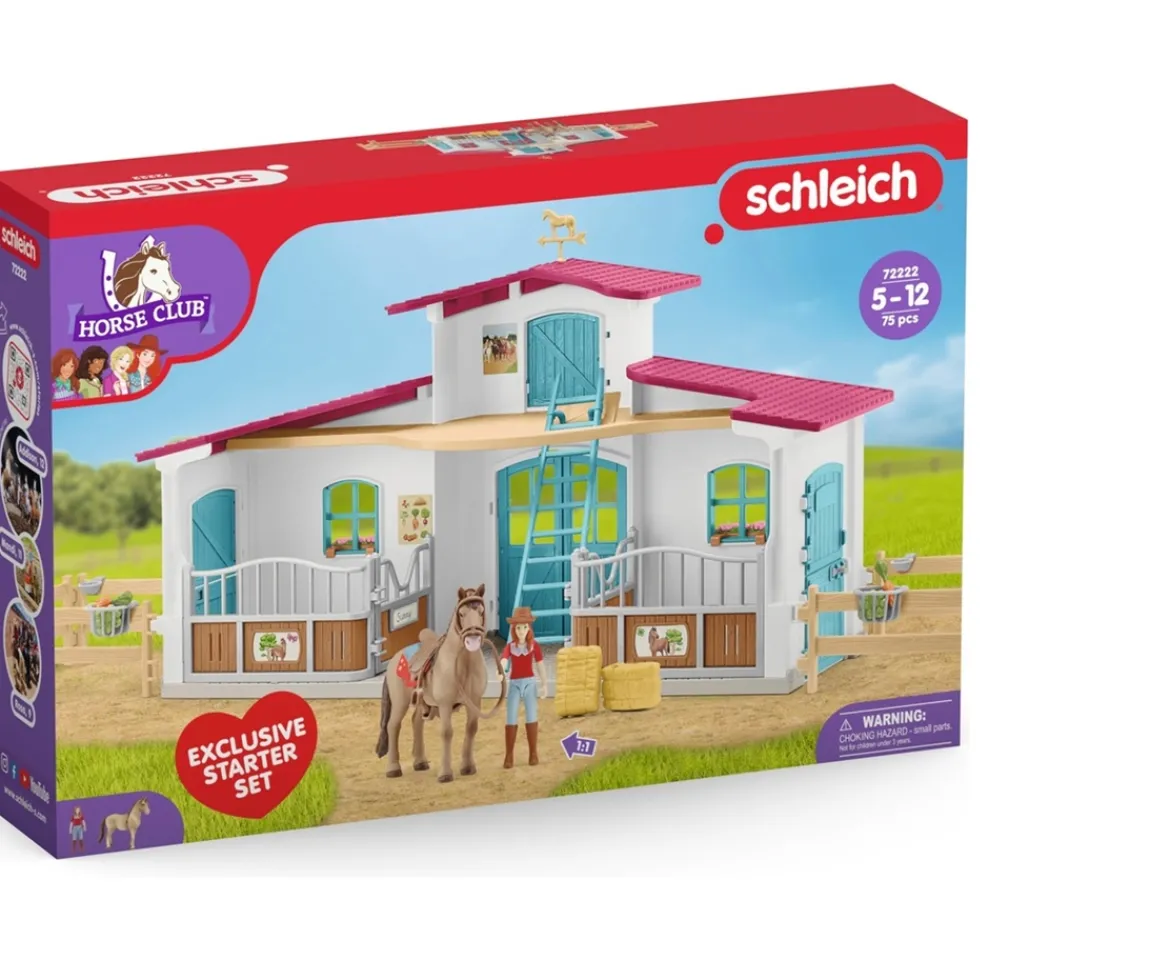 Immerse yourself in the world of horse riding with this schleich Horse Club 72222 Lakeside Riding Center Starter Set! The riding stable is not only a standalone play set, but can also easily be expanded with other horse club sets for limitless adventures (sold separately).2 floors full of fun!Explore the two floors of the riding stables, which are designed with great attention to detail. Each floor provides exciting surprises and opportunities for imaginative playtime. A secret ladder leads you directly to the hayloft, where additional space awaits for exciting adventures and hide-and-seek games.Home for your schleich horsesThe riding stable’s two horseboxes not only offer comfortable living space, but also small outdoor paddocks for fresh air and exercise. Your schleich horses will feel completely at home here.Great accessories includedAdditional accessories such as food, saddle blanket and straw bales make the playing experience even more realistic and lively. The schleich Horse Club 72222 Lakeside Riding Center Starter Set also includes a schleich horse and the adorable figure Hannah from the schleich Horse Club.