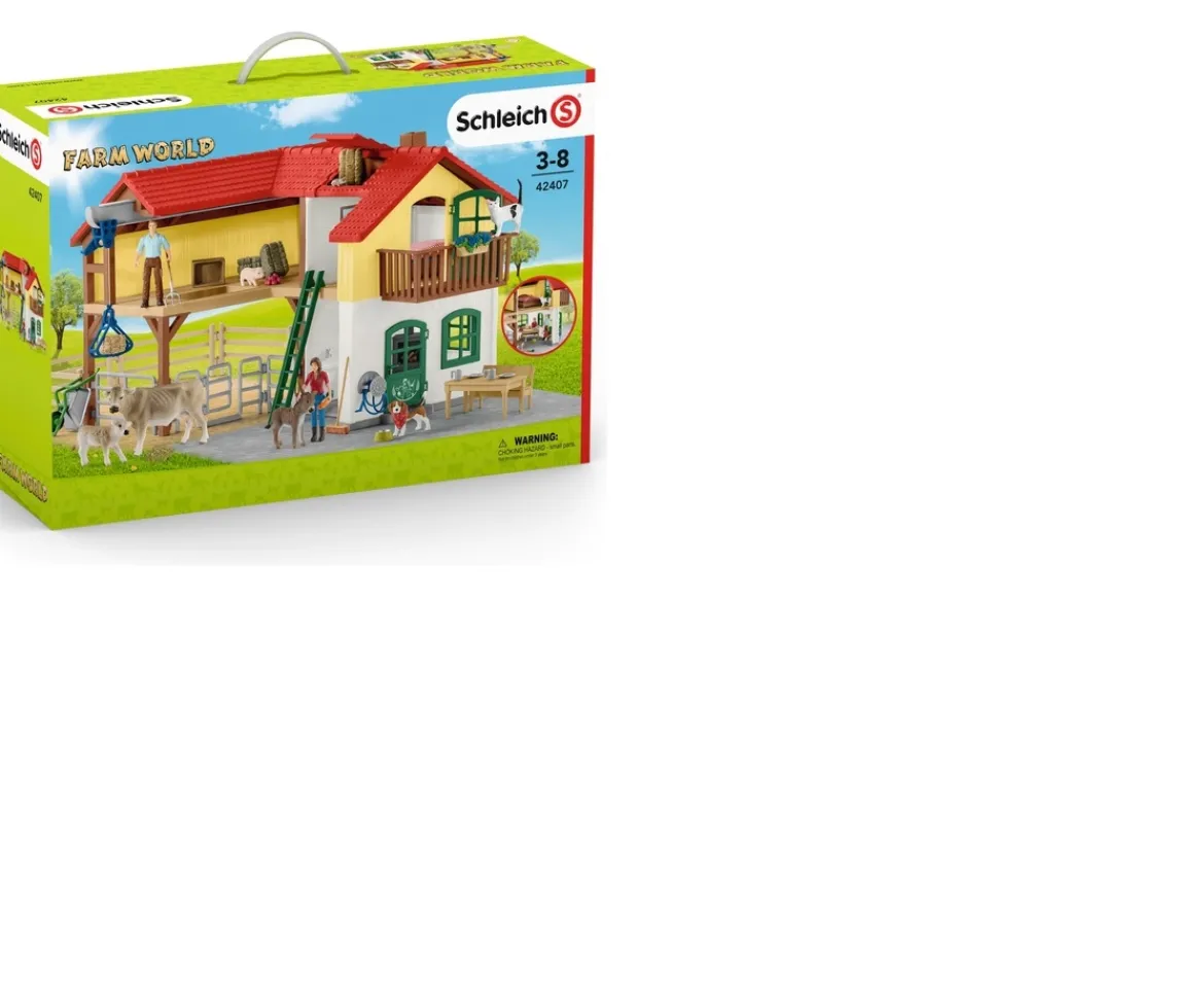 The large farmhouse from Schleich is the centrepiece of the Schleich Farmers Paul and Laura live here. Both of them lovingly carefor the animals on the farm. The set includes a whole host of accessories and functions for hours of fun.Next to the living areawith kitchen, dining area and bedroom, thereis the stable, which provides plenty of space for the animals. The haycan easily be transported to the loft for storage with the winch. Thehay can then be moved from there through the hatch to the animals.