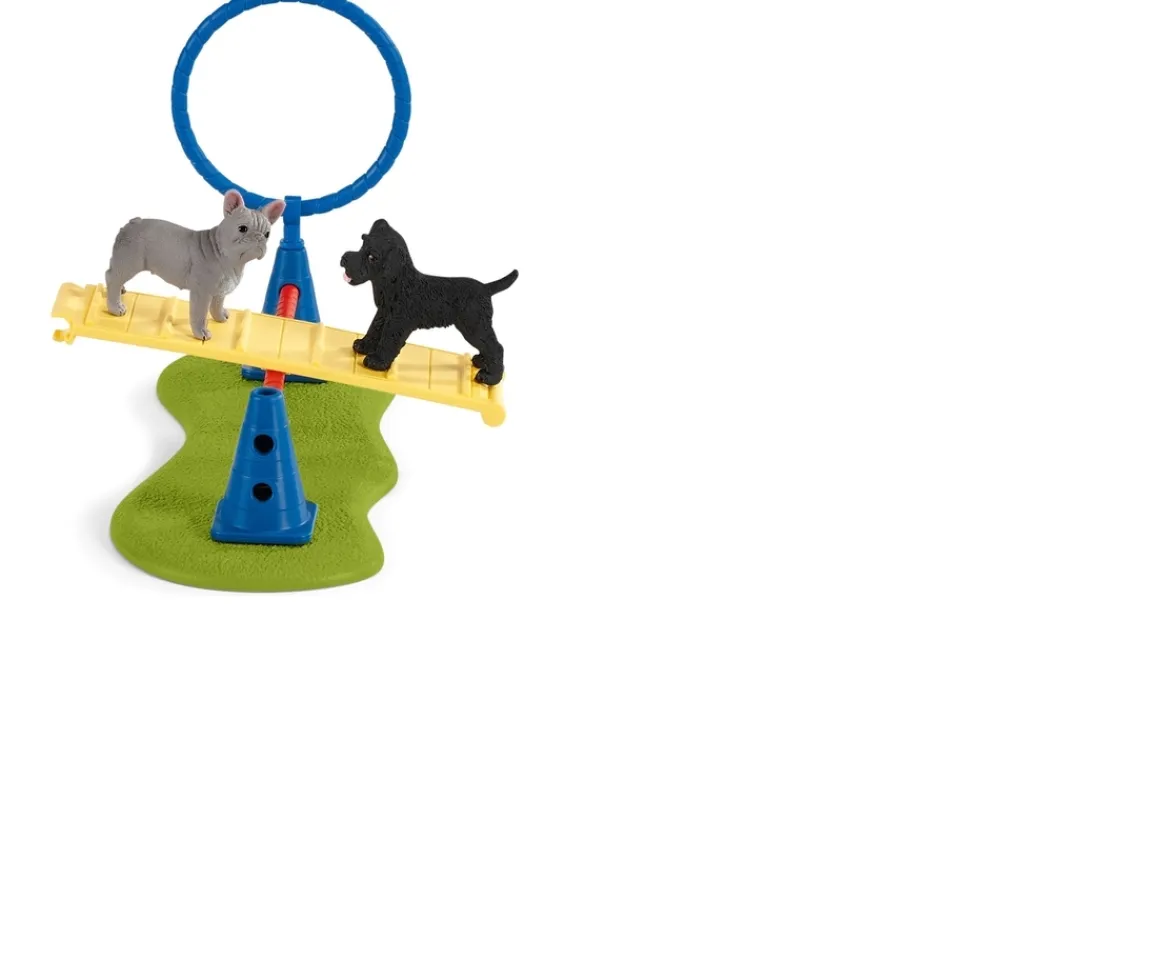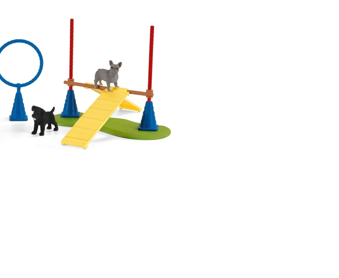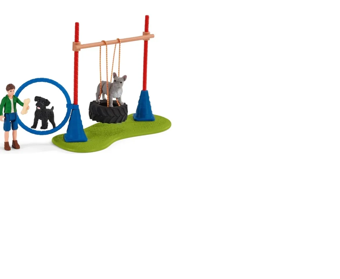 - Contents: A boy, a French bulldog, a miniature schnauzer, a bone, a tyre swing, 2 crossbars, 3 hurdles, 3 cones, a ground plate, a ring, 2 attachment clips, and an obstacle element