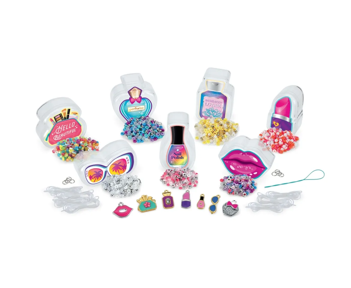 - Includes super cute beauty themed mini containers filled with beautiful beads and collectable charms