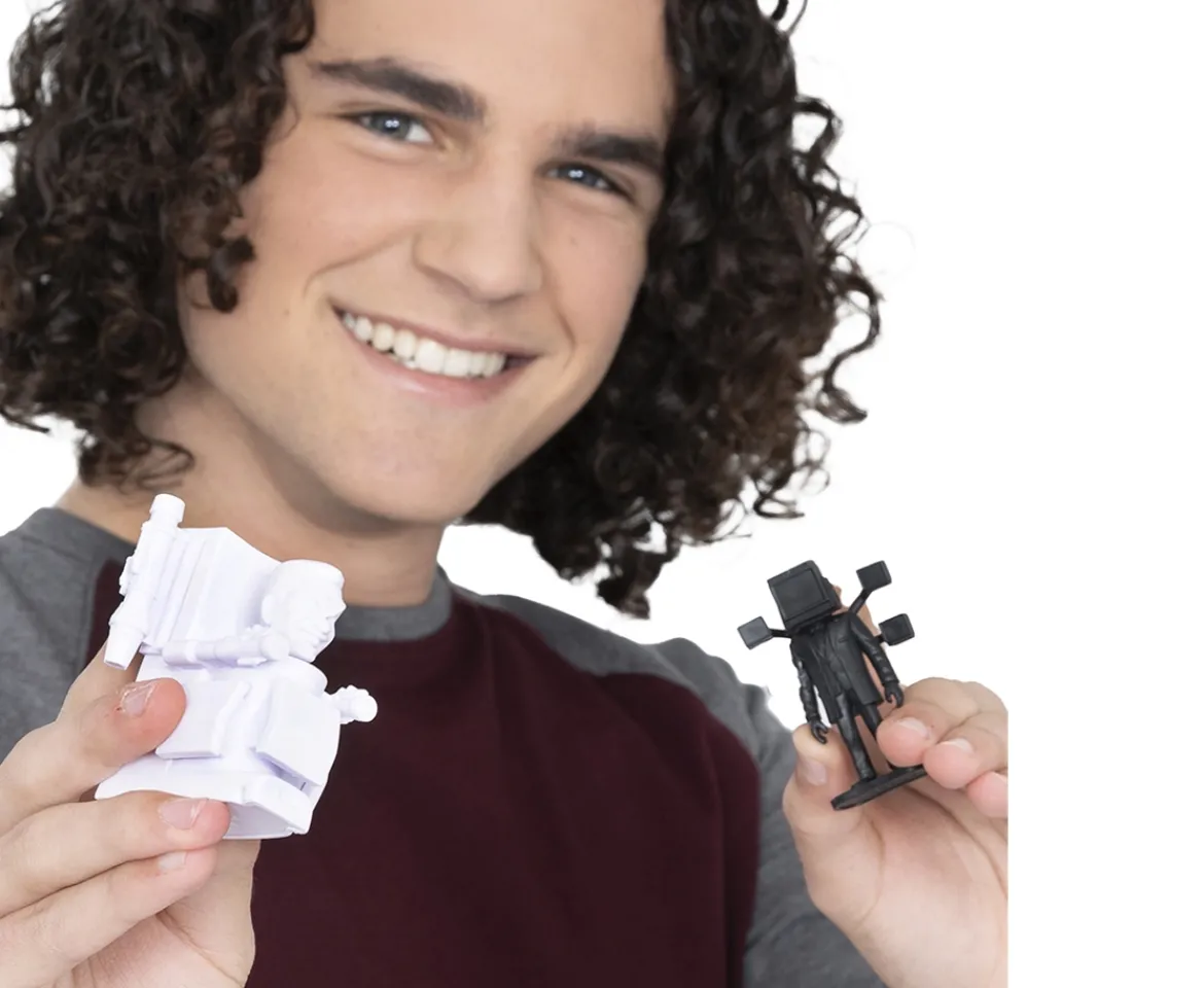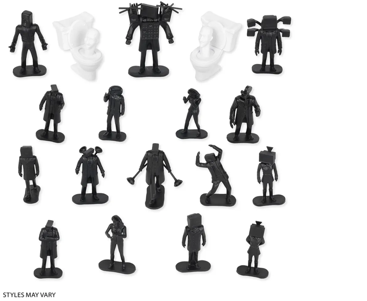 Skibidi Toilet, the hottest trending web series on YouTube, follows an ongoing fictional war between human-headed toilets and humanoid characters with electronic devices for heads. Now, fans can bring home collectible toy versions of these characters that capture all of the excitement from the screen! The Battle Bucket is the Ultimate set for Skibidi Toilet fans to recreate epic battles from the YouTube channel! It includes 20 total battle figures, including a Mystery Titan Figure! It features characters from both sides of the battle, so fans can decide to fight on the side of the Skibidi Toilets or the Alliance! Styles may vary