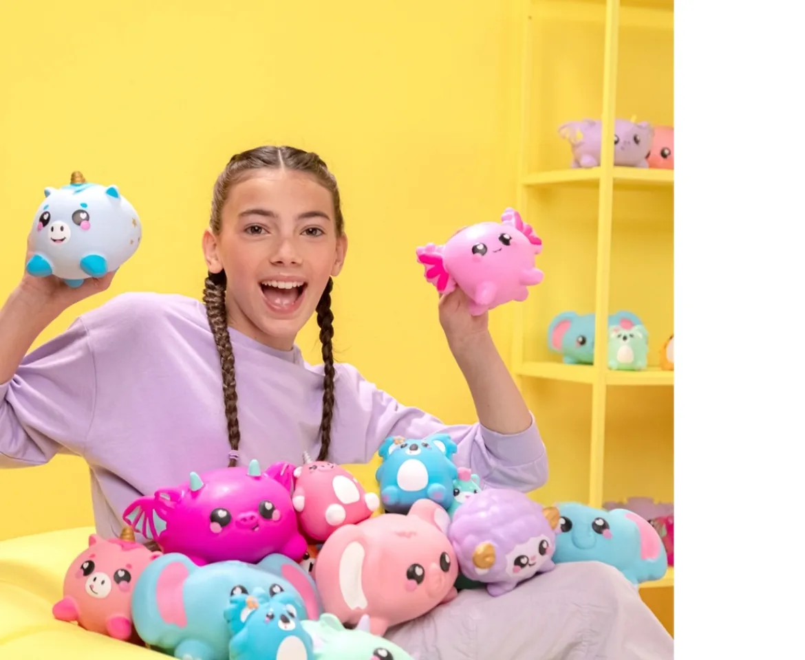 In the Smooshzees: Luvzees 11.4cm Series 1 Assortment, youll meet an adorable collection of squeezable characters that are softer than a cloud! Each Smooshzee plush has a unique personality and birthday. Super cute and stretchy, theres nothing softer to hug!There are 8 Luvzees to collect in Series 1, each measuring 11.4cm tall. Discover fun, cute characters including Boltz the blue Unicow, Sonny the yellow Axolotl, Willow the purple Sheep, and more! Each lovable plush is the perfect size to collect, display or take on the go!Each sold separately. Styles may vary.