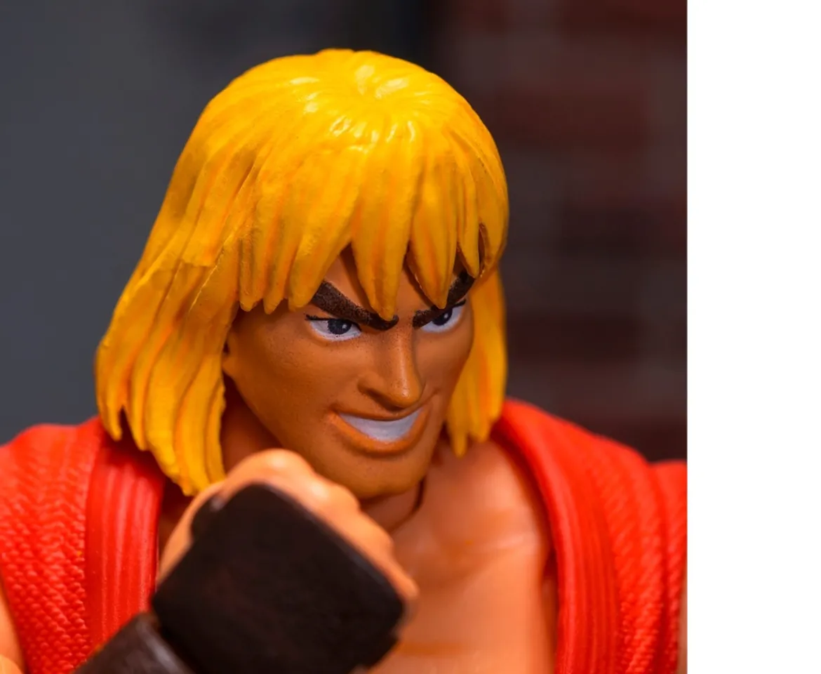 - Contents: 1x Street Fighter Ken Masters 15cm Action Figure, 2x Alternate Hands, 1x Alternate Head, 1x Flame Accessory, 1x Stand