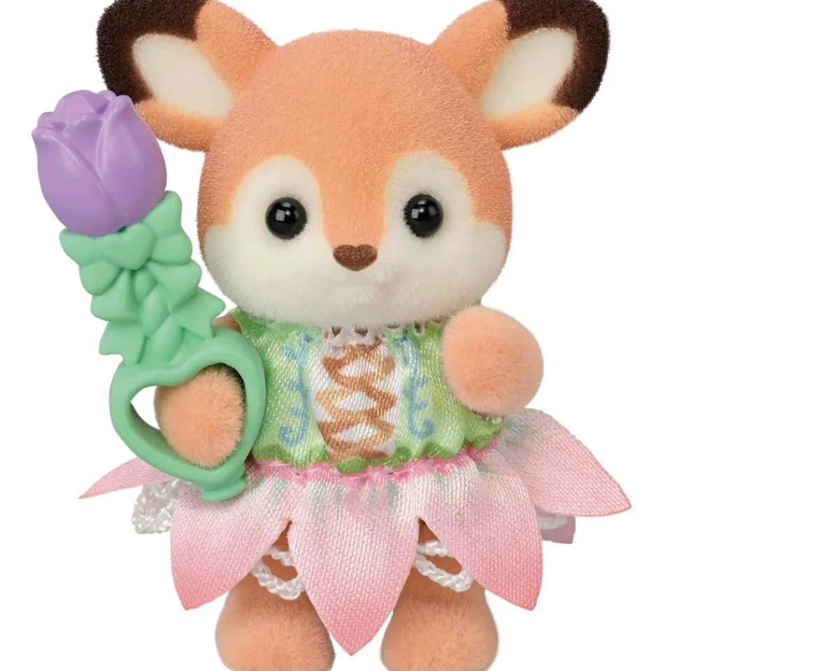 A cute, collectible series of Sylvanian Families baby figures with flower garden-themed accessories! In the Blooming Baby Friends collection, there are eight figures to discover, including one secret figure! Open it up and see which one you get!Each set also includes an accessory or costume for the baby. Will you find the Gray Cat Baby with a magical watering can, the Deer Baby with a tulip wand, or another adorable mystery baby?Each mystery set sold separately.