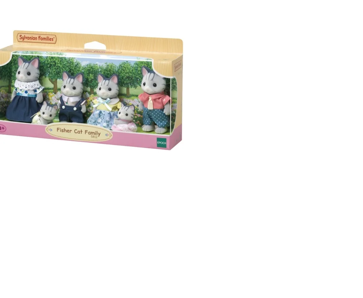 Add the Sylvanian Families Fisher Cat Family 6 Pack to your collection today! This pack will introduce you to a family of figures with beautiful grey fur with striking markings. Each figure features articulation in the head, arms, and legs for dynamic posing and playing. Add to your Sylvanian collection today!Father, Schroeder Fisher, is the finest house builder in all of Sylvania. He is best known for his creative woodwork and ornate carvings. Mother, Isabel Fisher, can often be seen and heard tending to her luscious garden. Son, Linus Fisher, is known in Sylvania for his playful disposition and his many friends. He is a practical joker and loves to tease his sister. Daughter, Lauren Fisher, loves to run through the meadow, climb trees and skipping with her friends. The twins, Eddie and Michelle, are happy babies who love to crawl through the garden, especially their mother’s cabbage patch.