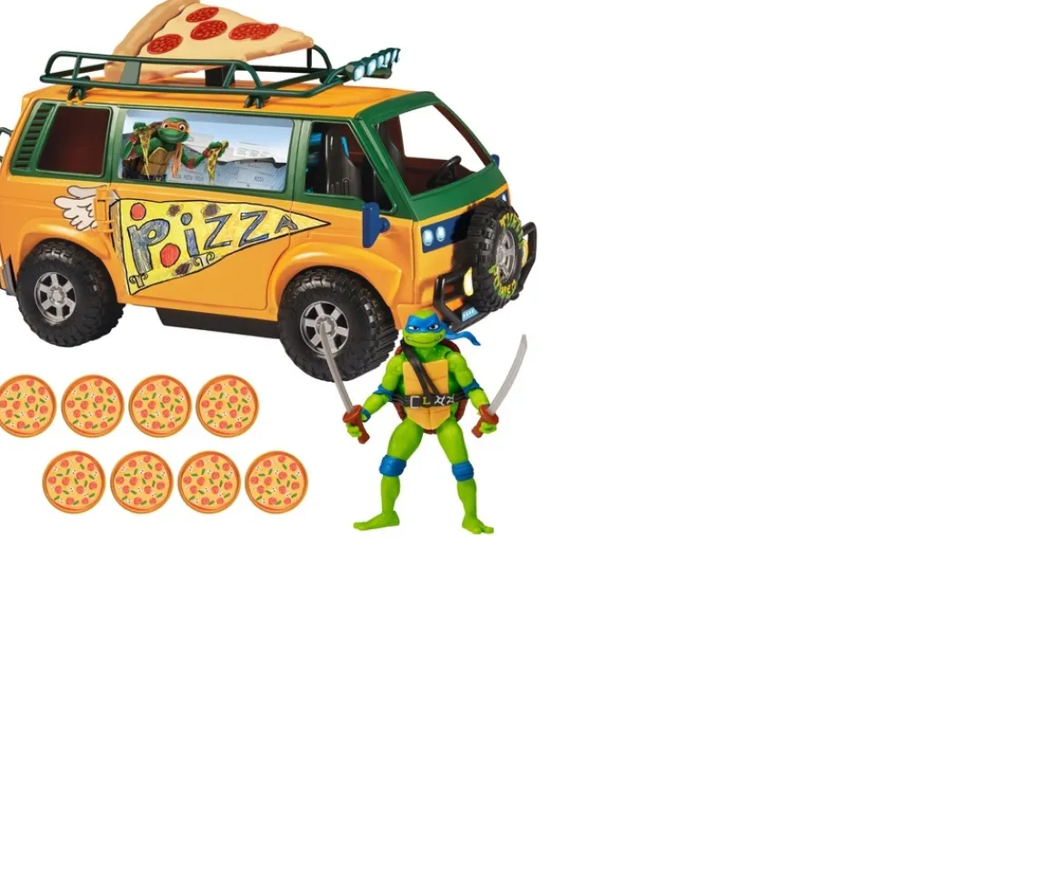 Don’t miss the exciting Teenage Mutant Ninja Turtles: Mutant Mayhem – Pizza Fire Van and Leonardo Action Figure! As seen in the hit movie, when Super Fly wreaks havoc, the Turtle Team brings out the big guns! Press the pizza slice on the van’s roof to open the side door, then press it again to slide out the pizza launcher! Fire up to 8 slices of pizza from the motorised launcher to hit the bad guys from near or far!This authentically designed pizza truck has room for the whole team inside — even Splinter! The van opens from the front and back for even more space, with all the firepower you need to save the day. You can even adjust the launchers angle to beat hard-to-hit villains!The 11.4cm Leonardo action figure comes with his iconic katanas and a weapons rack for his battle accessories, including a baby turtle! With 12 points of articulation for awesome fight poses, you and Leonardo can take down the bad guys for epic playtime adventures!