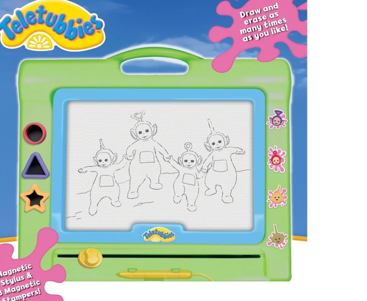 - Draw and erase over and over again on this large Teletubbies magnetic scribbler!